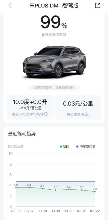 城区用电:一周一充,通勤成本每公里5分钱。对于日常通勤来说,比亚迪大电池DM-i车型给出了“用电自由”的解决方案。2026款秦PLUS DM-i等车型已将CLTC纯电续航提升至210km,直接杀入8万级市场。这意味着,以日均通勤30公里计算,一次充电足以覆盖一整周的出行需求。对于有有家充桩的用户,每度电费仅0.5元,年能耗成本不足4000元。而同级别燃油车油耗普遍在7.5L/100KM,在8.53元油价下,一年20000km油费接近1.3万元。仅此一项,插混车主一年就能省下近万元,堪称省钱的好搭档。