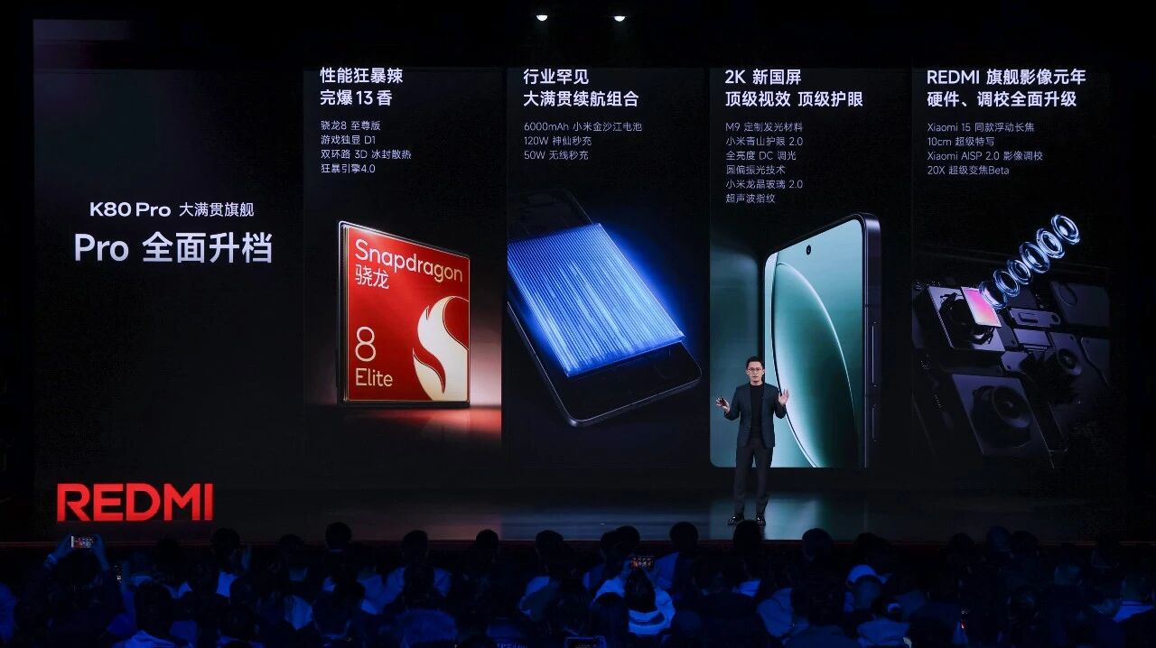 红米机型:红米K80至尊版和红米K80 Pro红米K80至尊版和红米K80 Pro大家都很熟悉了,红米K80至尊版采用天玑9400+处理器,1.5K直屏,光影猎人800主摄+8MP超广角,7410mAh电池+100W快充,周边的超声波指纹、IP68&69防尘防水和金属中框等内容都没有缺席,而且马达和扬声器表现属于同档最强的存在。