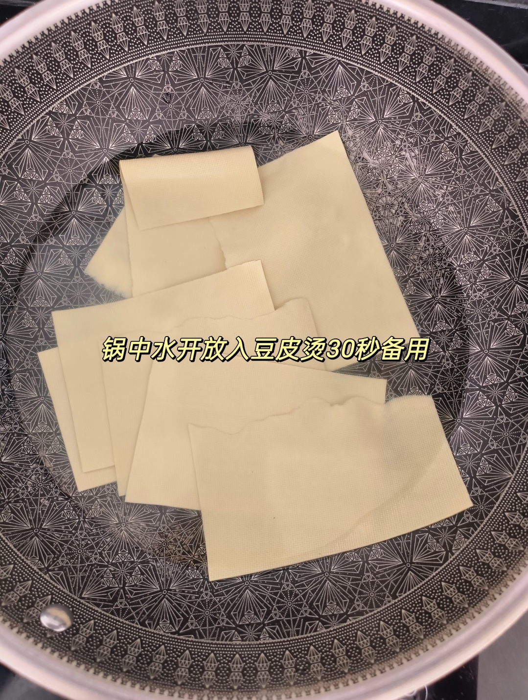 与此同时,我们也不能忽视配菜的准备。将黄瓜和胡萝卜分别切成细丝,再切一些备用的大葱丝。这些蔬菜丝不仅色彩鲜艳,红绿相间令人赏心悦目,更为菜品增添了清脆的口感和丰富的维生素,平衡了肉的厚重。豆皮则需要简单处理,锅中水烧开后,放入豆皮焯烫约三十秒,这一步不仅能去除豆皮的豆腥味,还能使其变得更加柔软,便于卷制。