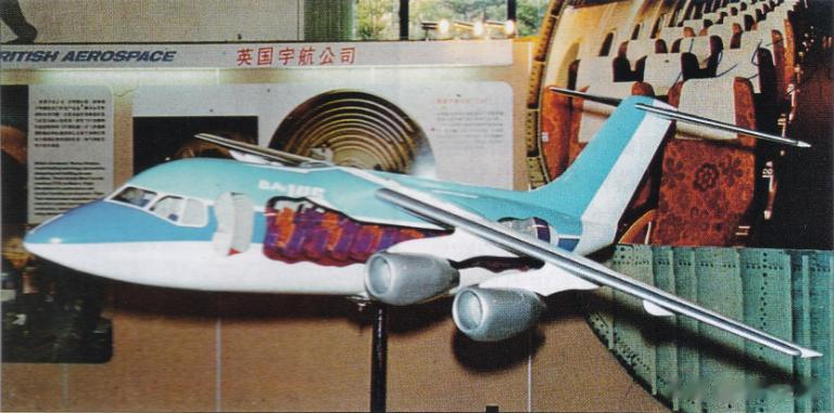 英国宇航公司展出的BAe.146飞机模型,该机型中国在上世纪80年代曾经少量引进。