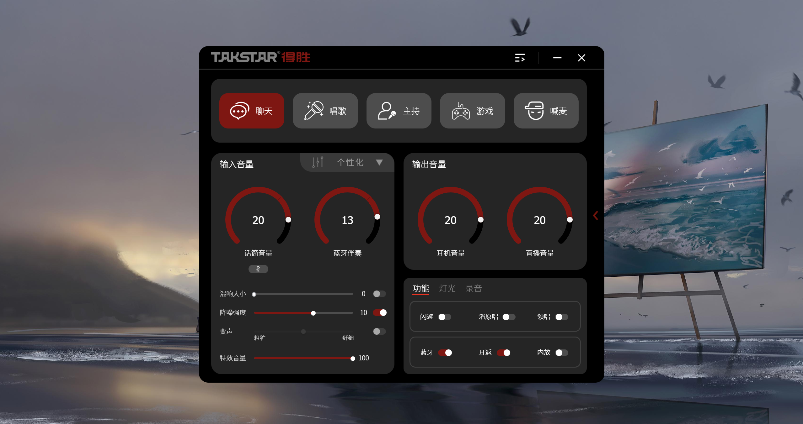 但它又不是那种完全没有可玩性的傻瓜设备。你要是只是想录个口播、开个直播,基础操作已经够了;但你稍微有点自己的想法,比如想让声音厚一点、亮一点,或者唱歌时想要一点更顺手的辅助,它也给了你往下调的空间,这个分寸我觉得拿捏得还不错。