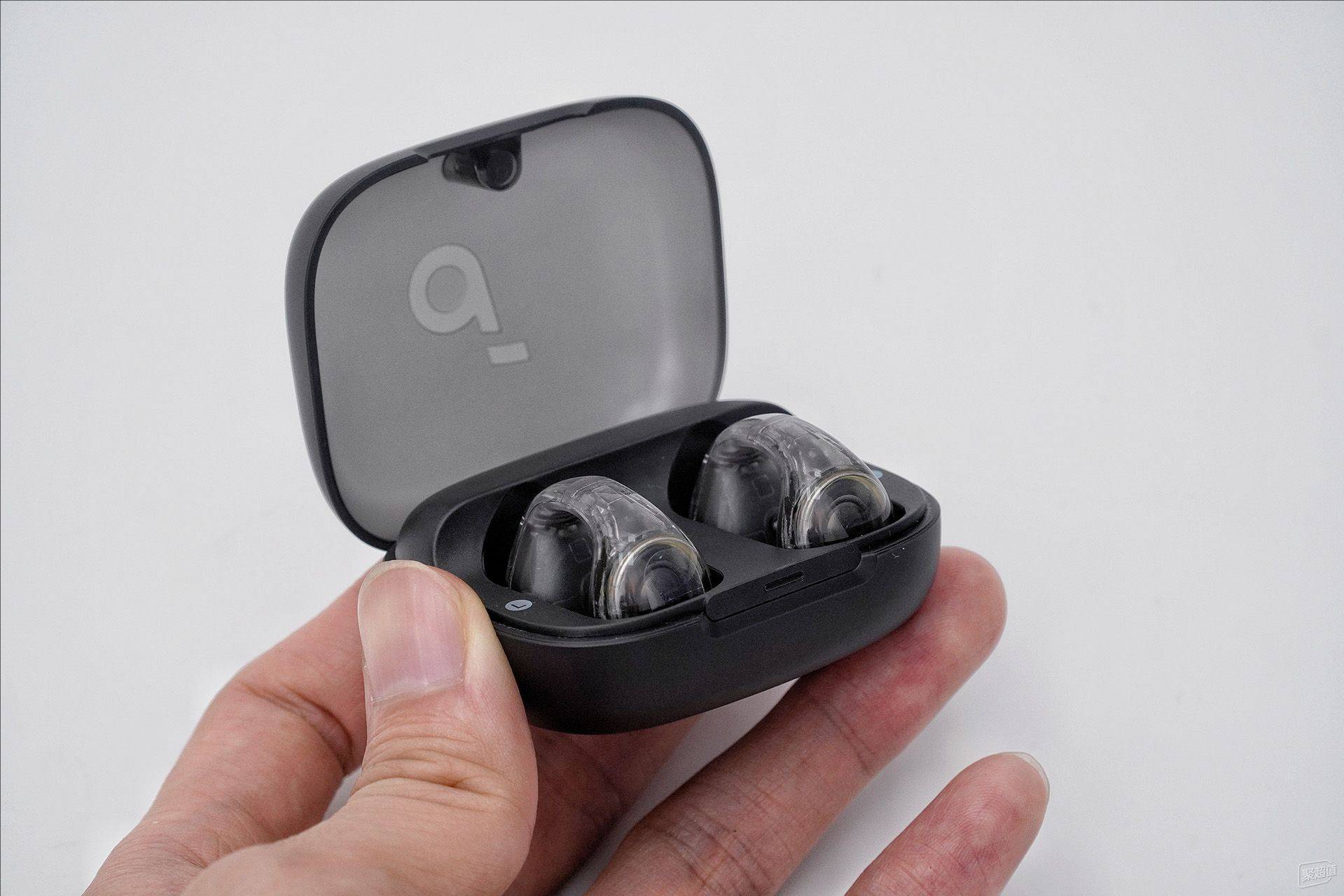 Bose Ultra的充电盒采用鹅卵石造型设计,磁吸开合顺滑,手感极佳。耳机本体单只重量约6.35克,搭配柔性硅胶耳钩和可调金属转轴,佩戴稳固而轻盈,不会对耳道造成压迫感。运动或通勤时,镜腿设计不会干扰动作,整体佩戴舒适感非常出色。