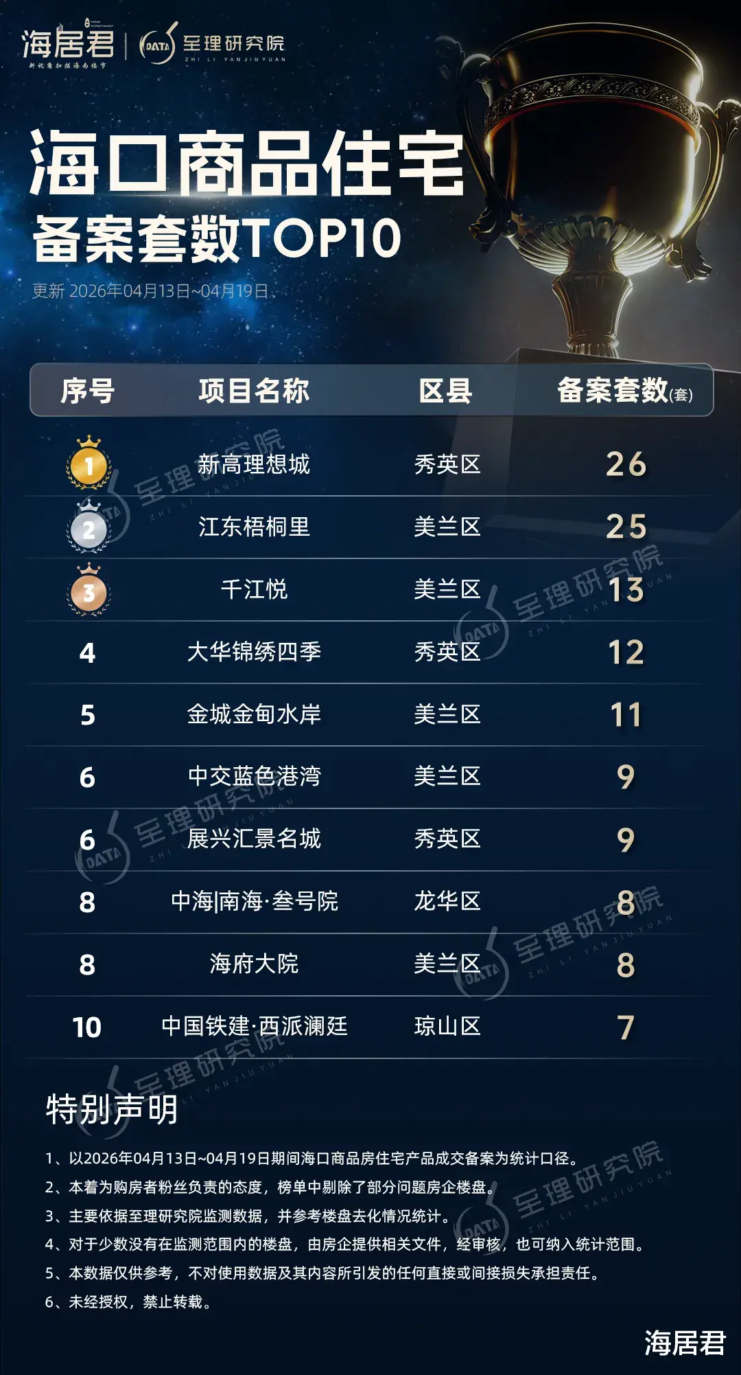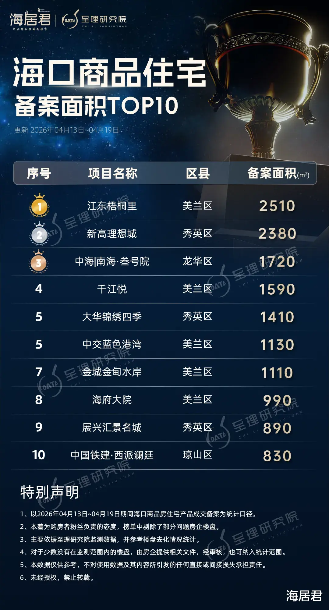海居君刚刚从至理研究院旗下海南房地产大数据信息系统平台获悉,上周(4.13-4.19)海口楼市热度延续,商品房『住宅』成交389套、揽金近6亿元。