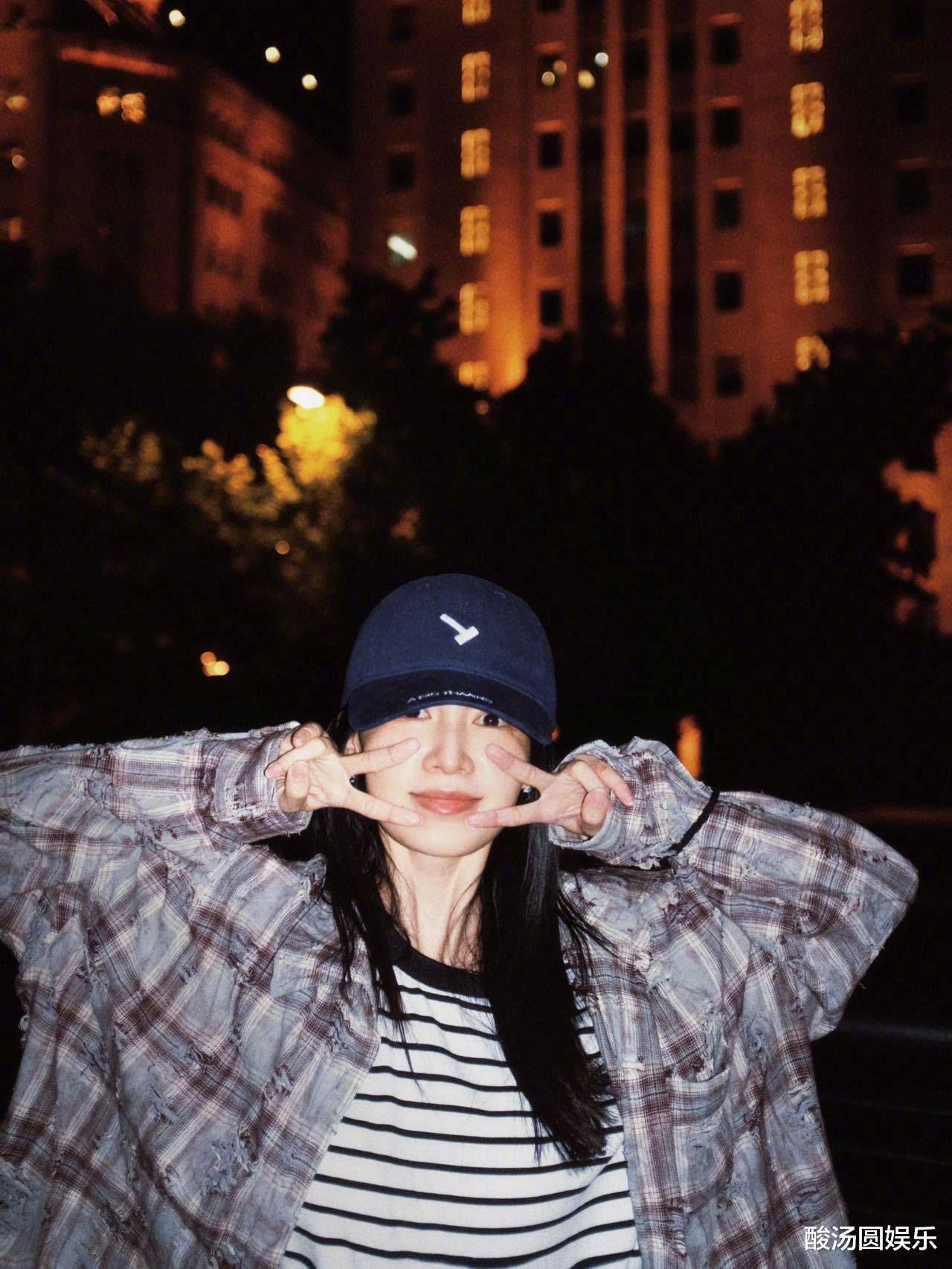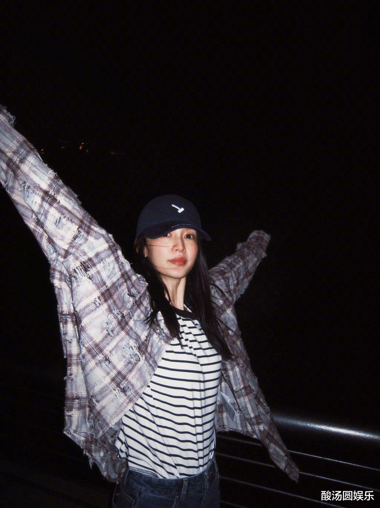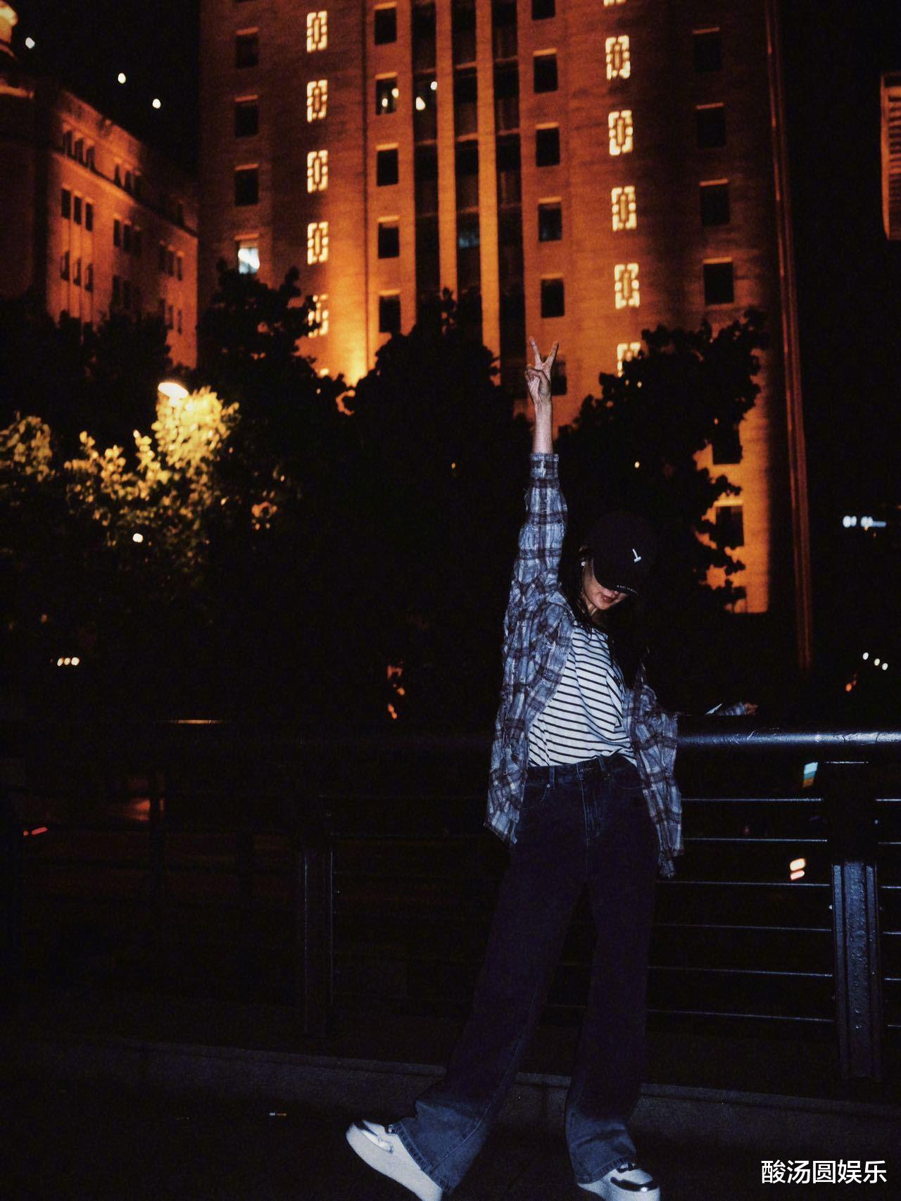 在这组照片中,李沁以一身休闲装扮亮相,深色棒球帽、格子衬衫搭配条纹T恤,既显得青春活力,又不失时尚感。她双手举起,手指形成“V”字形手势,面带微笑地面对镜头,仿佛在向我们展示她的胜利和喜悦。在夜晚的街头,她的身影与周围的灯光交相辉映,构成了一幅美丽的画面。
