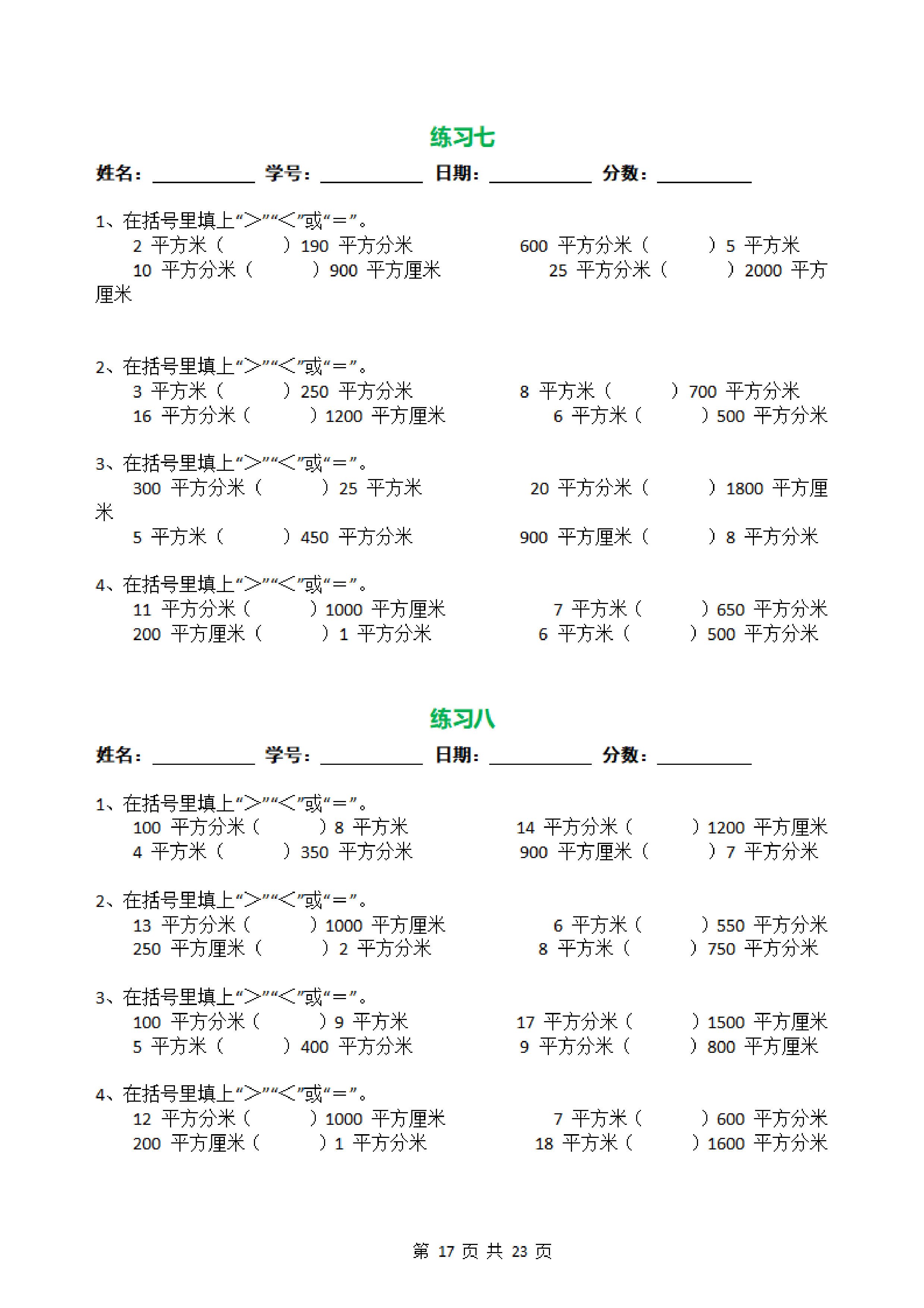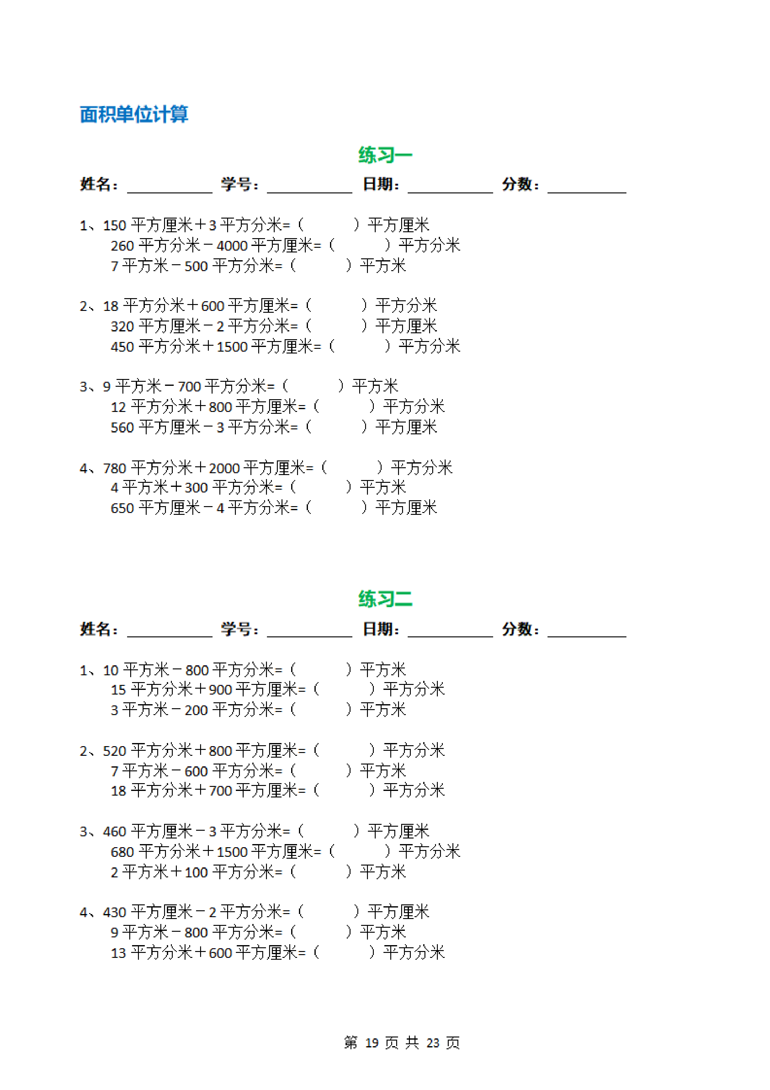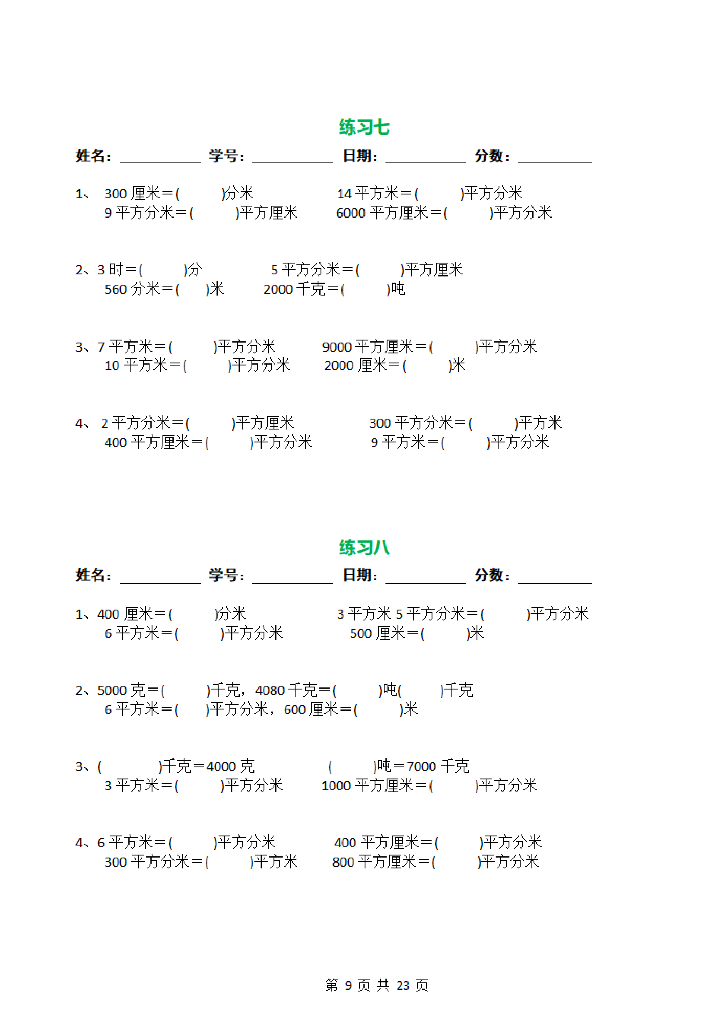 (2)3平方分米=( )平方厘米 400平方分米=( )平方米