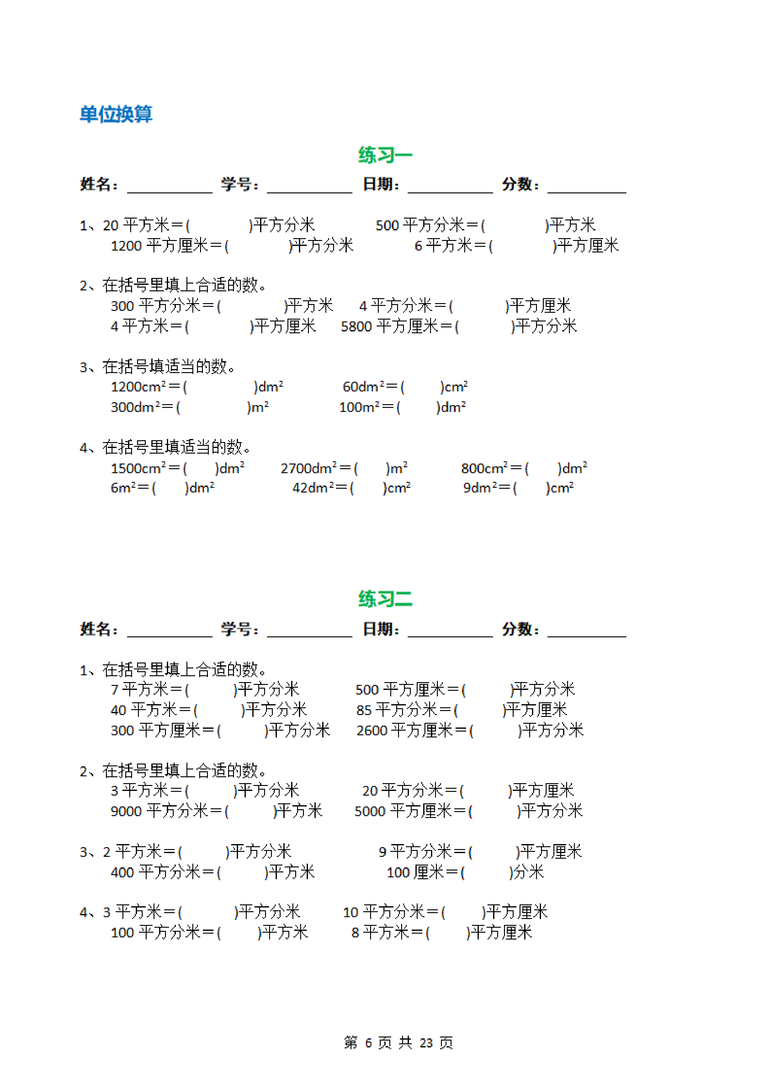 一块门垫的面积约6( ),一间卧室的占地面积约18( )。
