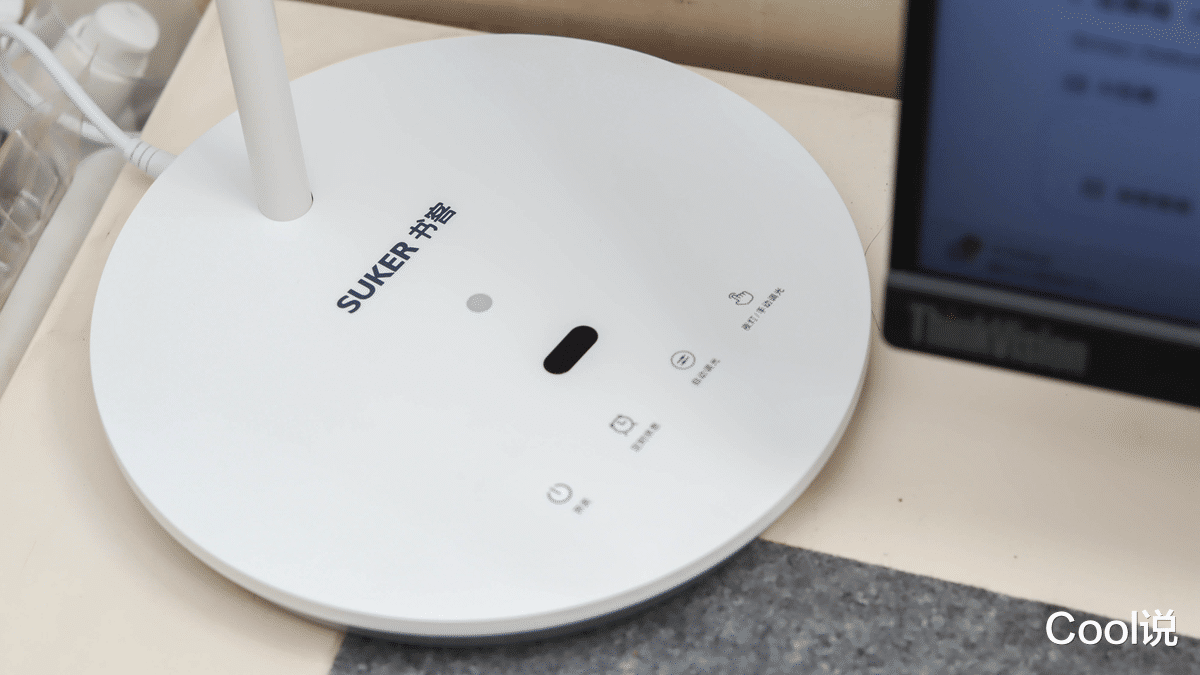 底座看似小巧,实际上份量不小,上面除了物理触摸调节按键之外,还有一个红外手势感应区,通过手势就能实现台灯开关、亮度无极调节灯操作。