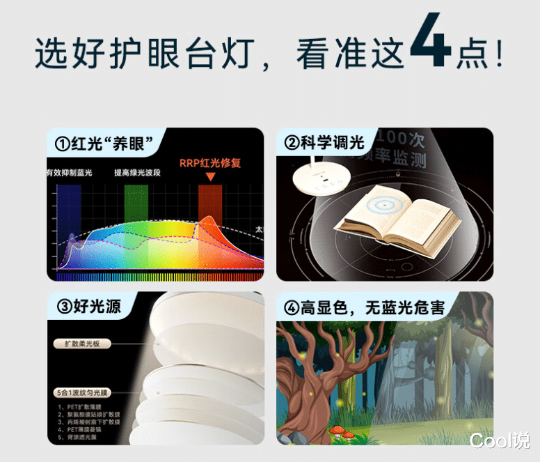 确实,廉价的台灯由于光照不均、频闪、范围小等原因,就很容易给视力造成不可逆的伤害。而卖的特别贵的就一定好吗?也不尽然!一款好的台灯一定要满足以下四点:能够过滤380-455Nm有害蓝光,增加有益“红光”来有效缓解视觉疲劳,降低近视风险;能够科学调光,就是根据环境可以动态的调整,让科学护眼更精准;光源与太阳自然光相似度越高越好,模拟自然全光谱最佳;最起码要符合国家关于儿童近视防控的AA标准,这样才能用着放心。