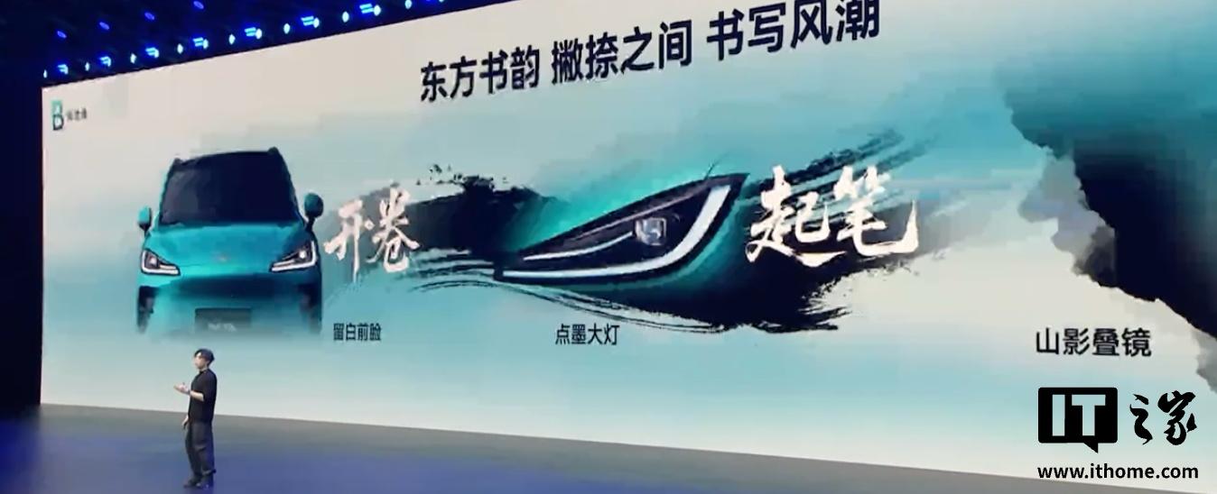 新车由前奔驰设计总监领衔团队操刀,采用“东方书韵”设计语言。 外观:点墨大灯、银钩腰线、水墨长虹OLED尾灯,融合传统水墨书法意境与现代工业美学。 色彩:推出与敦煌联名的“鸣沙翠”等6种国风配色,8层工艺车漆质感出众。