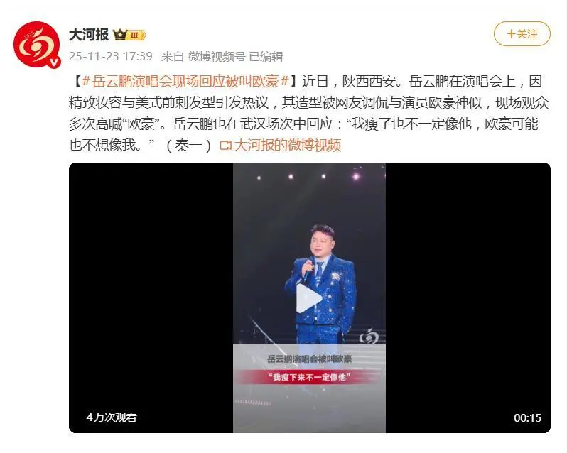 “内娱玩梗天花板非岳云鹏莫属!” 11月22日武汉演唱会现场,当全场观众再次齐喊 “欧豪” 时,岳云鹏扶着话筒笑到直不起腰:“你们够了啊!再喊我就真以为自己是欧豪了!” 从西安场的 “岳云豪” 到武汉场的 “胖版欧豪”,这场横跨两周的 “身份错位” 大戏,网友更是笑称:“这哪是演唱会,分明是大型认亲现场!”