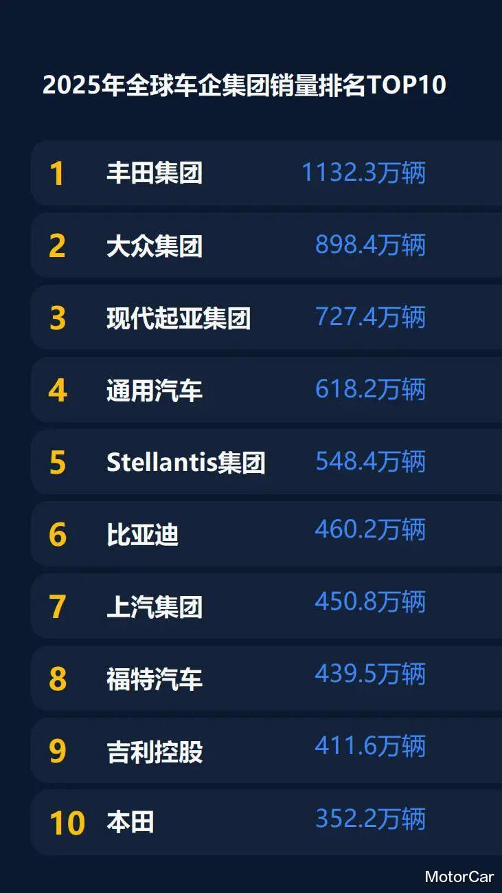 2025全球销量最高十大车企终于出炉了,原因是Stellantis集团一直拖后腿,迟迟没有发布2025年的销售数据。