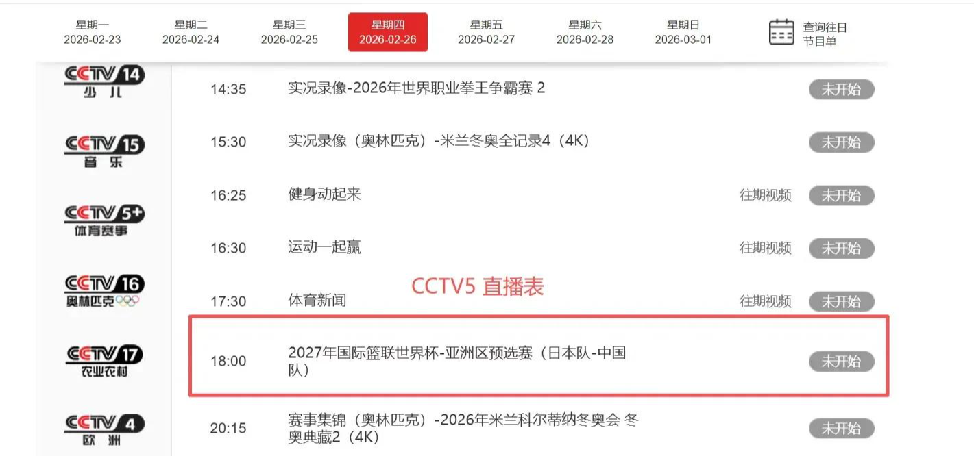 北京时间2月26日,这场比赛就要开打了。明天晚上是大家值得期待的一场比赛,而且CCTV5将全程直播这场比赛。