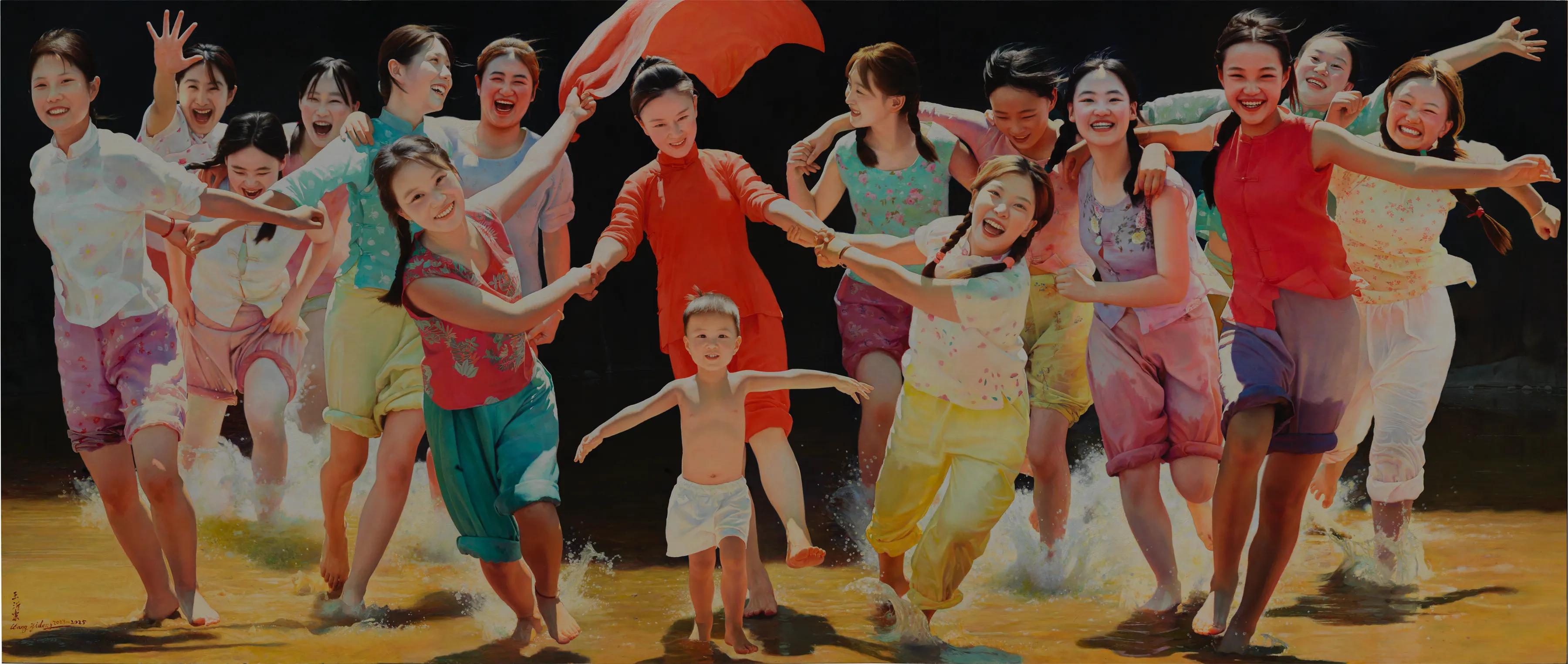 王沂东的作品兼具古典写实的严谨精致与东方美学的含蓄诗意,红色的喜庆热烈、黑色的厚重深沉、白色的纯净静谧,交织成独特的本土色彩语义系统,既还原沂蒙乡村的质朴温情,又承载传统民俗的文化底蕴。尤其笔下的沂蒙新娘、乡土人物,将东方女性的含蓄温婉与乡土生活的本真质感刻画得入木三分,让油画艺术真正扎根中国文化土壤,流淌故土情怀。