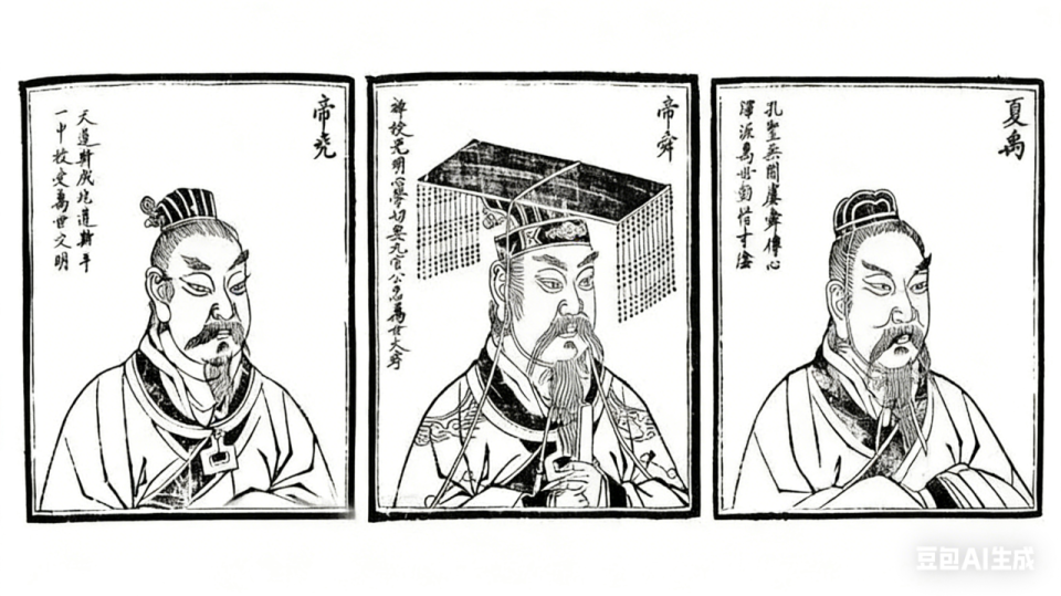 而禹,也是黄帝的四世孙。所以按照辈分来看的话,尧和禹是同一辈分,而舜比这两个人小四辈。另外,禹的爷爷是颛顼,也就是高中课文《离骚》第一句话提到的“帝高阳”。属于五帝之一,即使到了禹父亲这一辈,依旧很有影响力。所以与舜不同,禹可不是平民,要不是禹的父亲鲧治水不力,或许尧之后就是鲧继承帝位了。