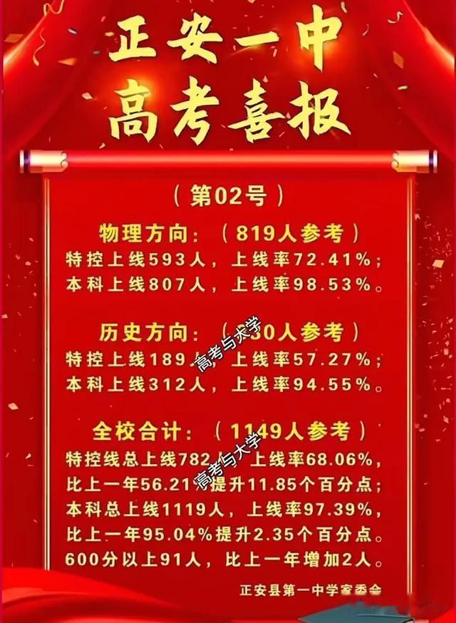2025年高考正安一中600分以上91人,同比增加2人,录取清北3人,其中清华大学2人,北京大学1人。