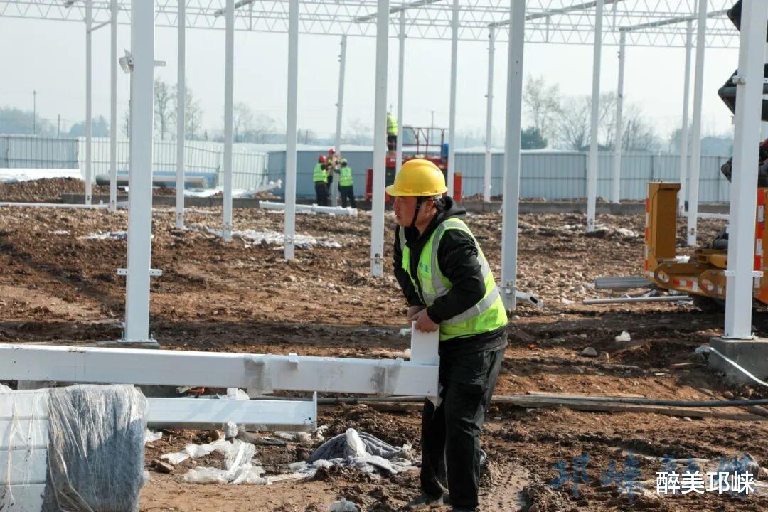 走进施工现场,一派繁忙景象。大棚结构主体的钢结构施工正稳步推进,各道工序衔接顺畅,现场施工节奏紧凑、秩序井然,全体建设者正以实干姿态推进项目建设,确保按时间节点完成施工任务。