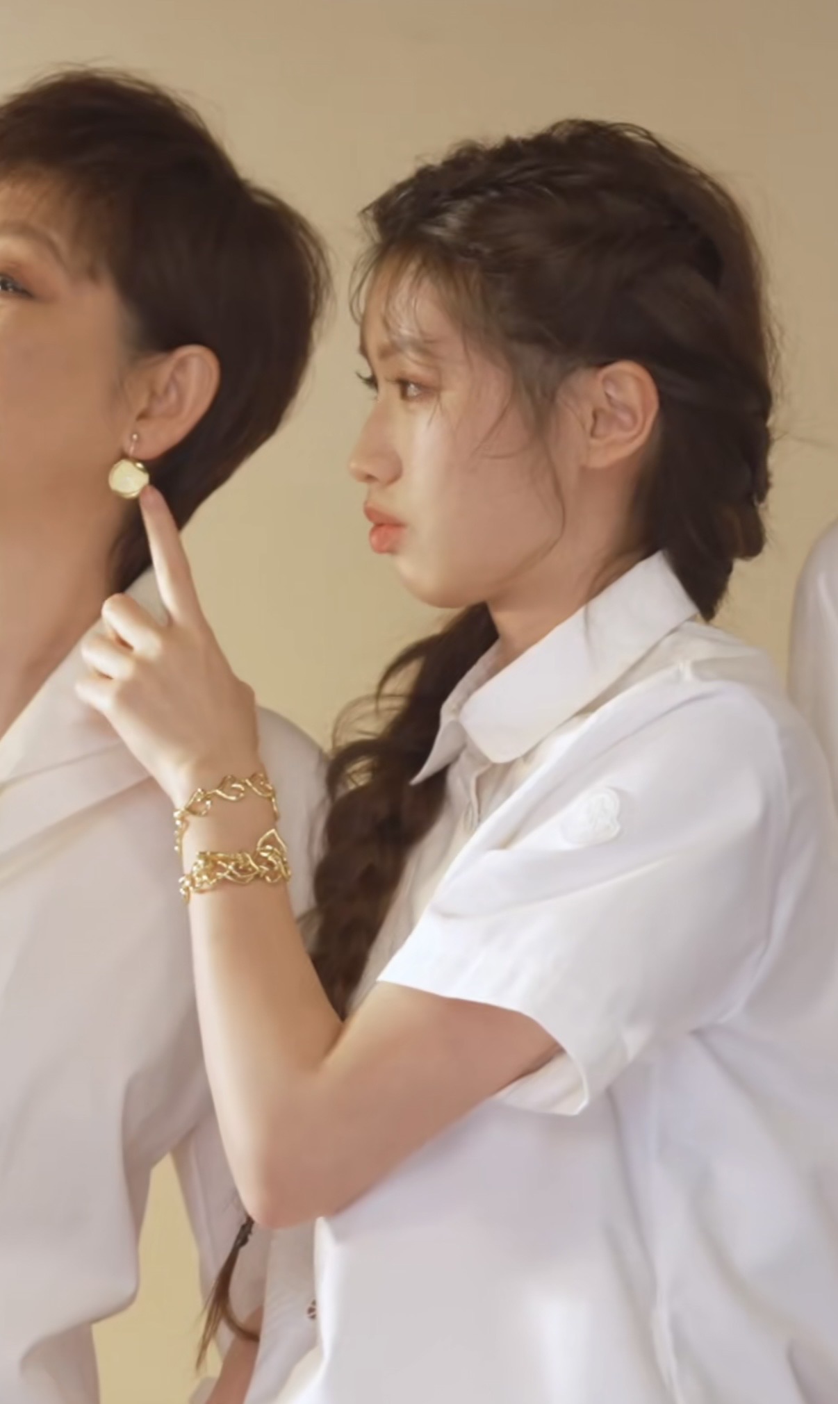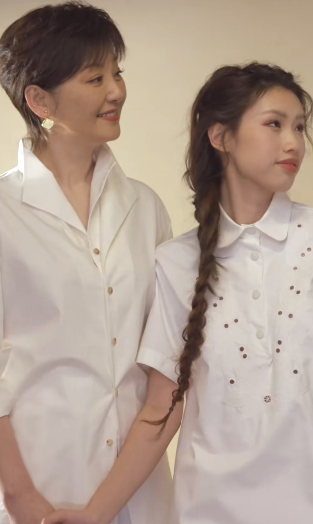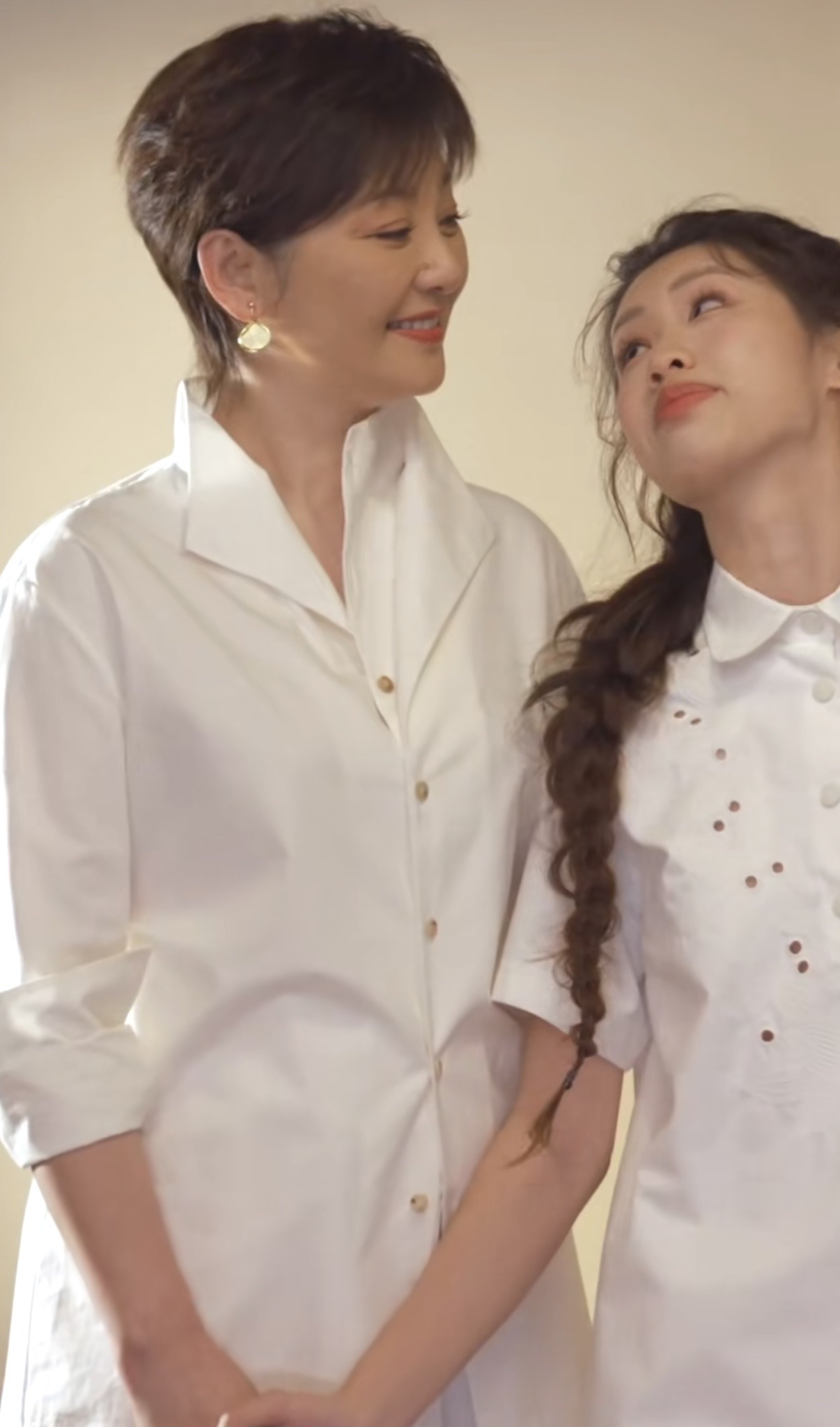 徐朵像个小朋友一样,去轻轻触碰妈妈的耳环,只有感情亲密的人,才会不自觉的做出这样的小动作。