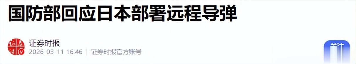 证券汇报——国防部回应日本部署远程导弹 2026-03-11