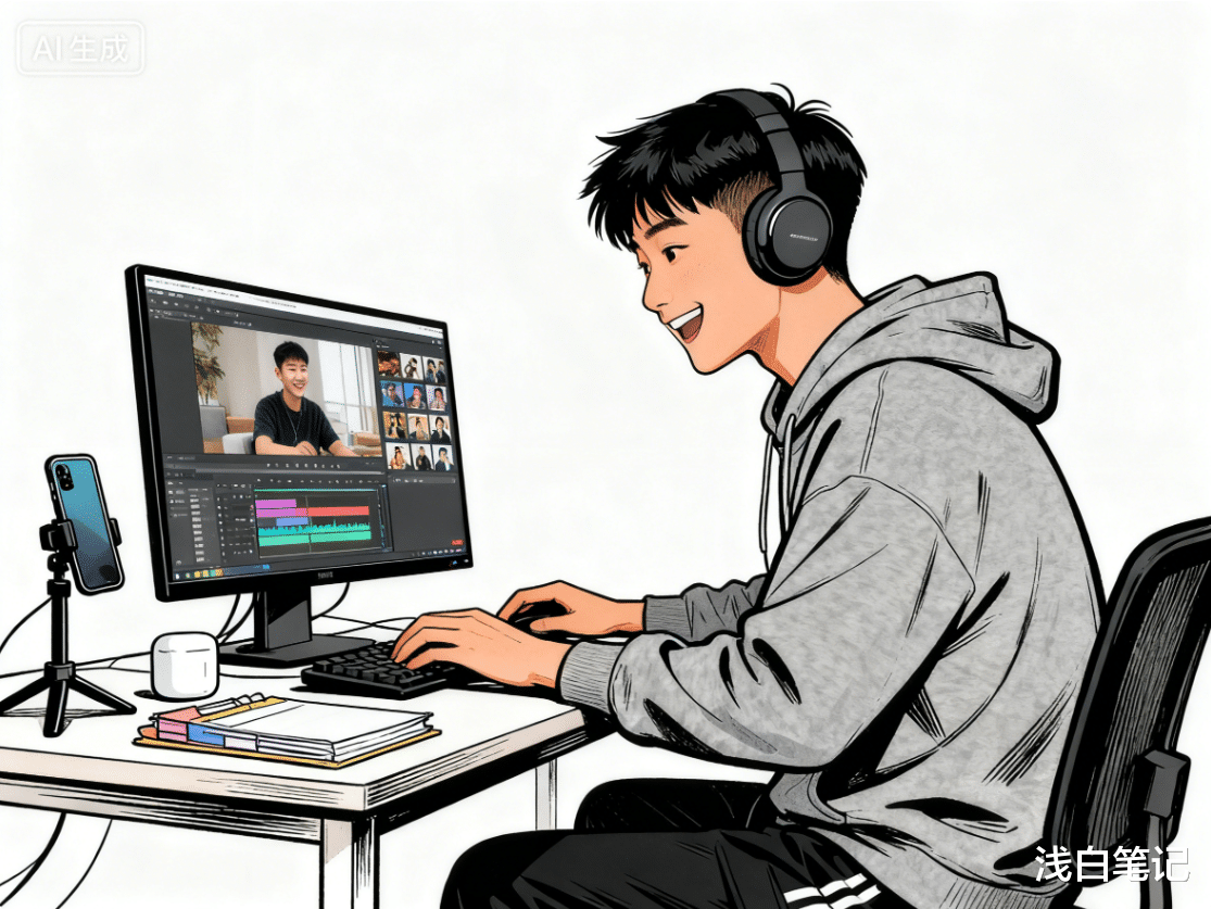 他专接自媒体博主的“粗剪”活,比如把博主拍的零散素材拼接、加字幕、配背景音乐,一条1分钟的视频收费50-80块,熟练后1小时能剪2条,每天睡前剪2小时刚好。