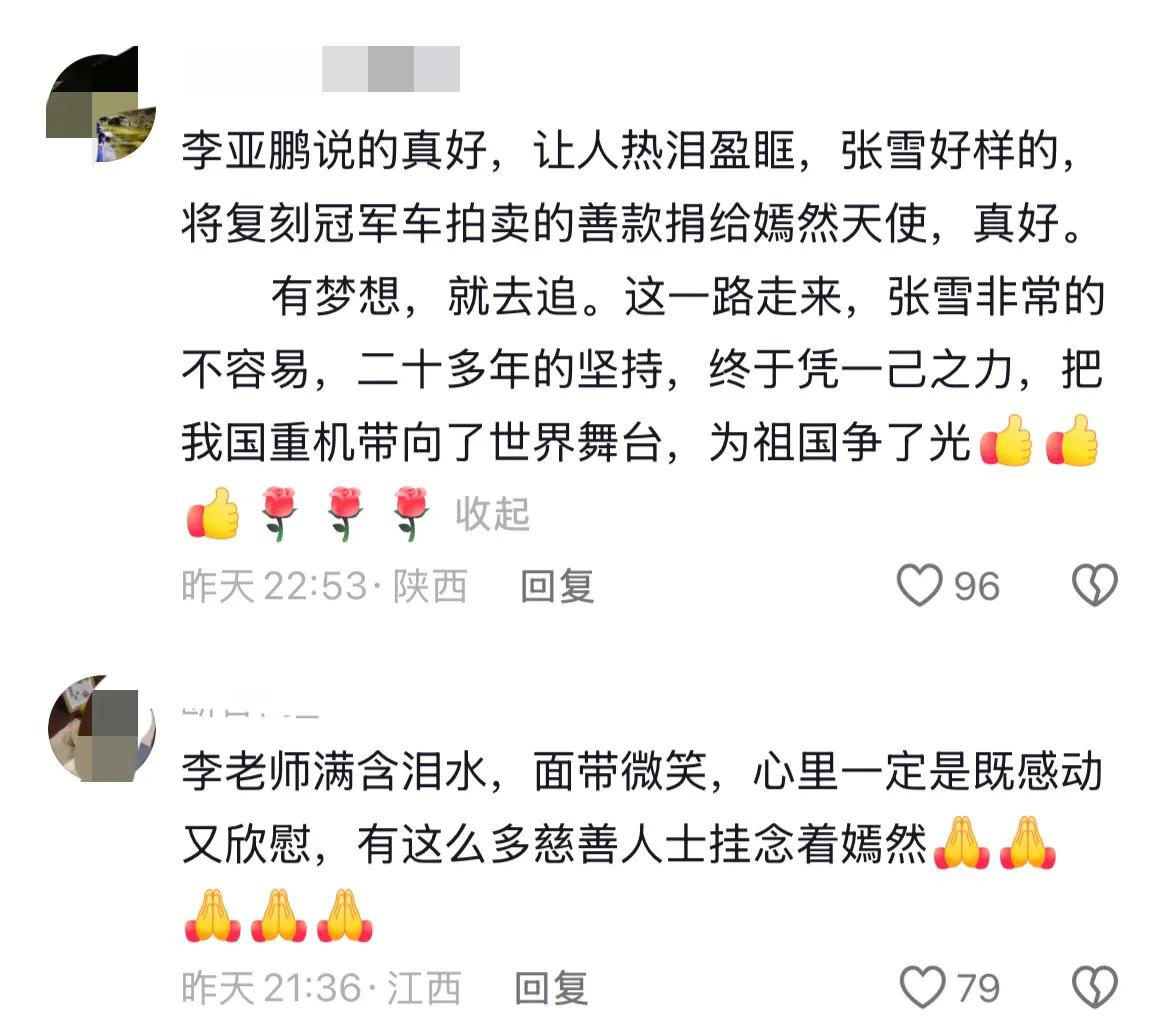4月3日晚,正在外地直播的李亚鹏通过视频正式回应了张雪要拍卖一辆在国际赛场上两次拿下冠军的机车一比一复刻版,将拍卖的所有善款捐给李亚鹏的嫣然基金的消息。