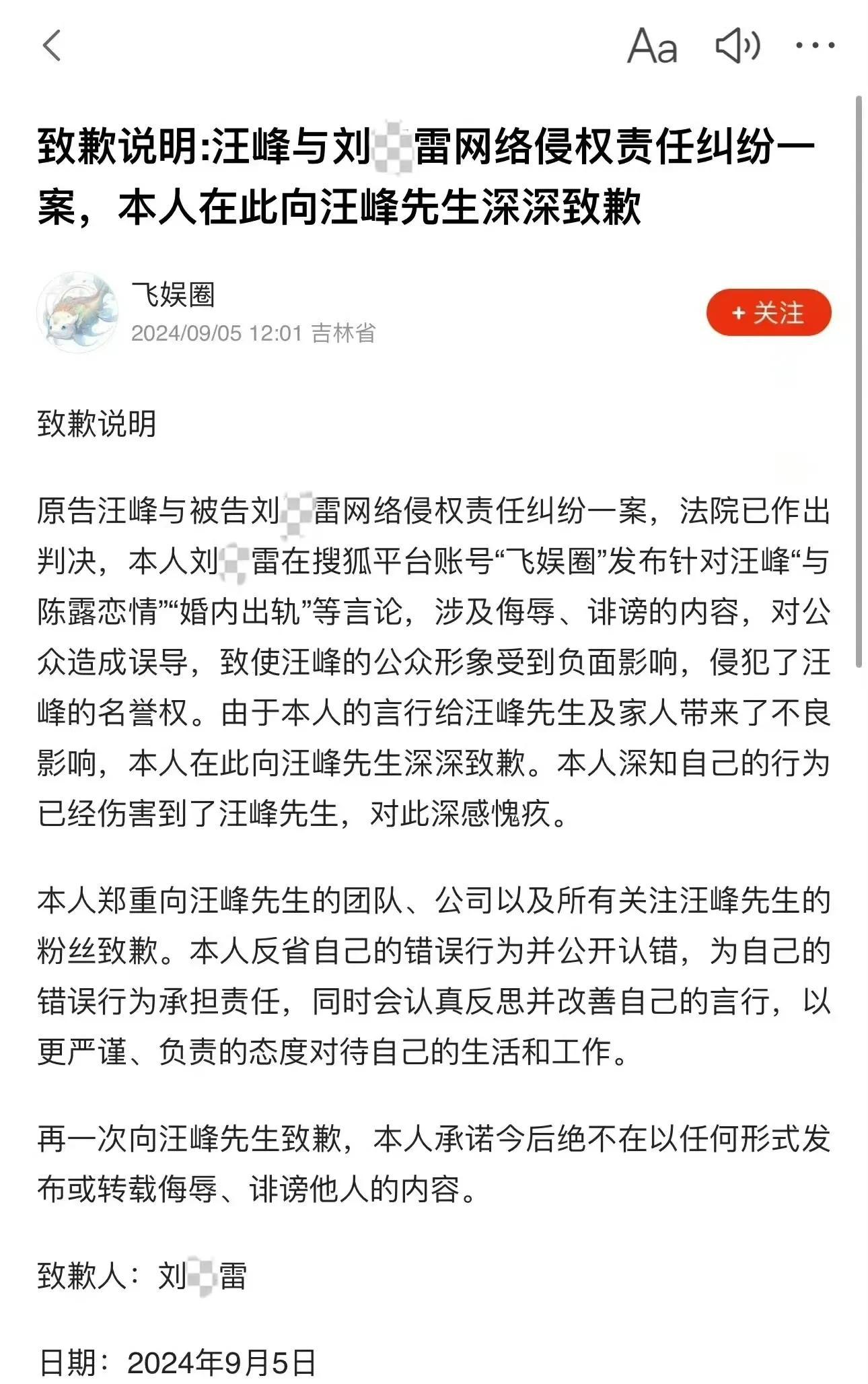 终于清白了!汪峰名誉权胜诉,造谣者道歉,这就是最好的结局