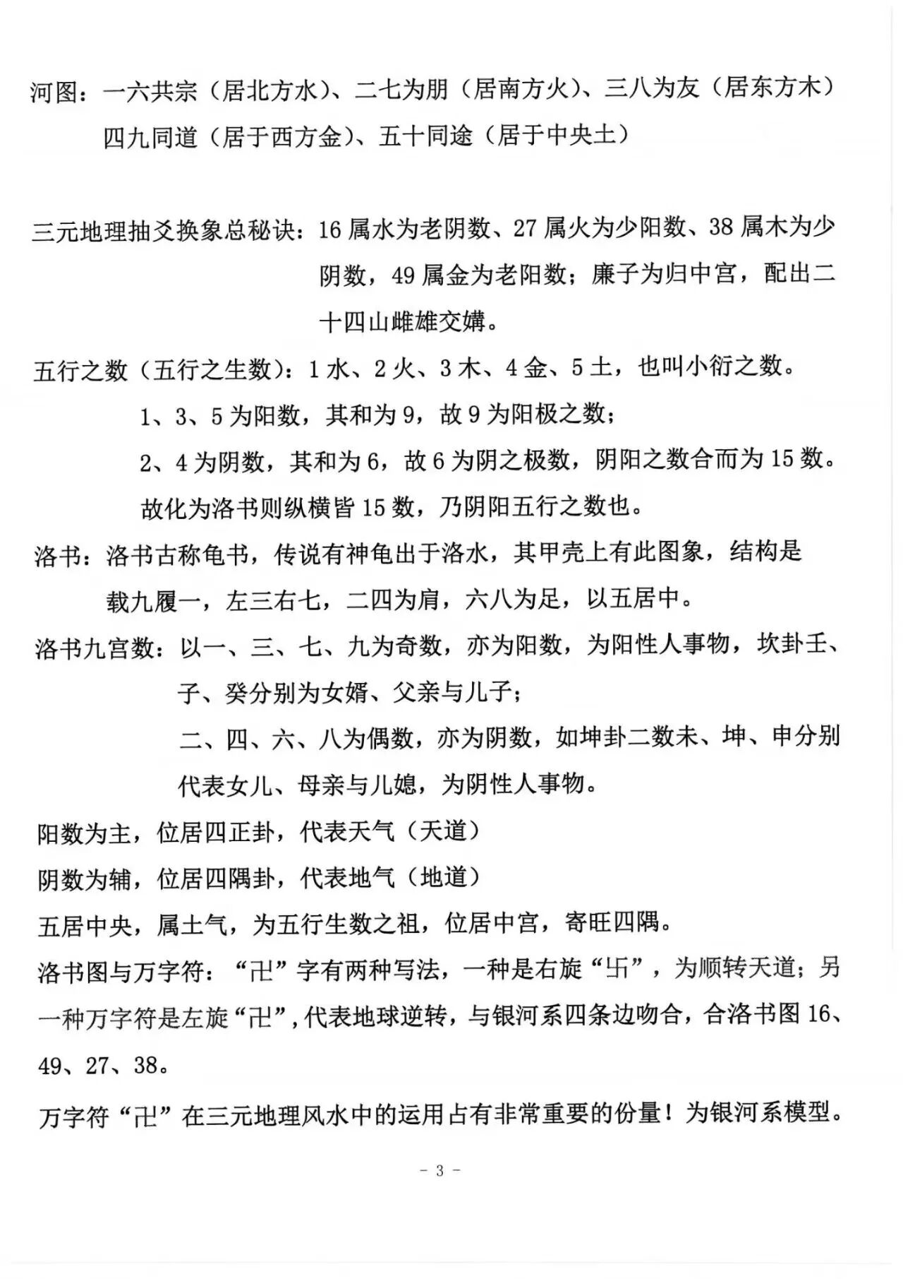 珍本的精髓在于 “源流清晰、体系完整” 的三僚传承脉络,完美复刻杨公风水 “理法并重” 的古法逻辑。开篇 60 页以 “杨公三元地理风水” 为纲,详解三元九运的时空流转规律,附 “洛书九宫飞星图” 标注不同运期的吉凶方位,如 “上元一运坎位当旺、七运兑位招财” 的核心论断,与《青囊奥语》中 “先天为体,后天为用” 的理念一脉相承。更珍贵的是刘国胜整理的 “三僚三元风水头中尾” 体系 ——“头理气” 讲龙穴砂水的基础匹配,明确 “龙脉入首需合卦气”;“中理气” 解三元合局的核心密码,传授 “雌雄交媾” 的断局要诀;“尾理气” 论旺衰流转的实操方法,标注 “旺山旺向” 的立局准则,三段式架构让初学者也能循序渐进掌握精髓。