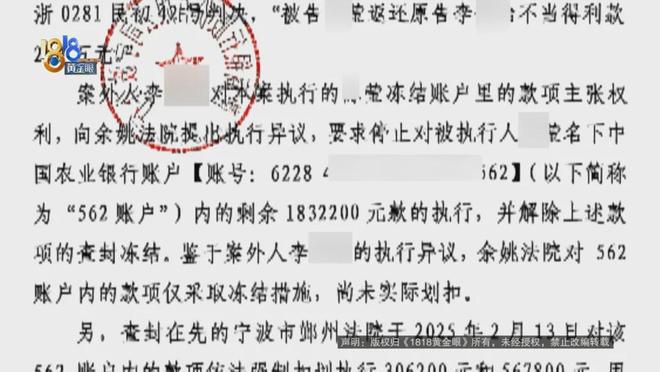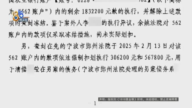 余姚法院对账户内的款项仅采取冻结措施,尚未实际划扣