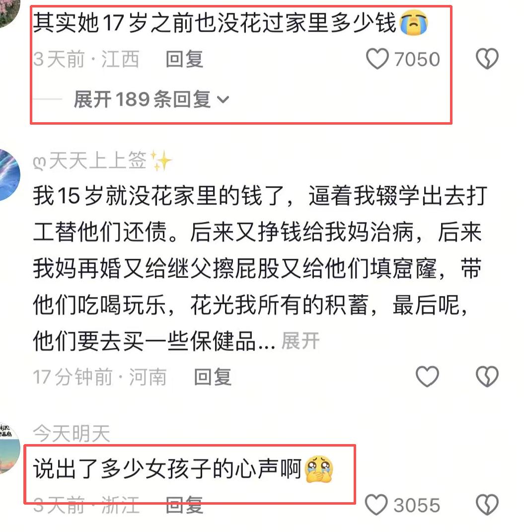 有人说:“其实她17岁以前,也没花家里多少钱。”