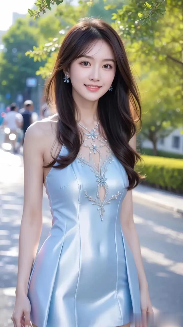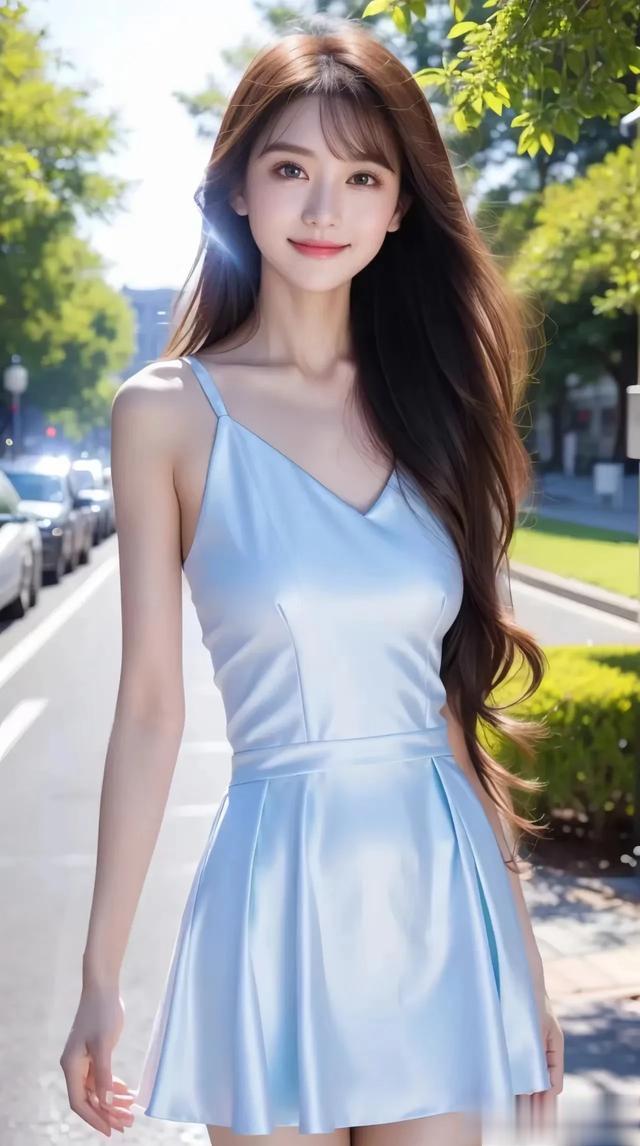 清纯美女壁纸‖ 夏日清爽蓝裙,在街头,自在美丽,期待夏天的到来