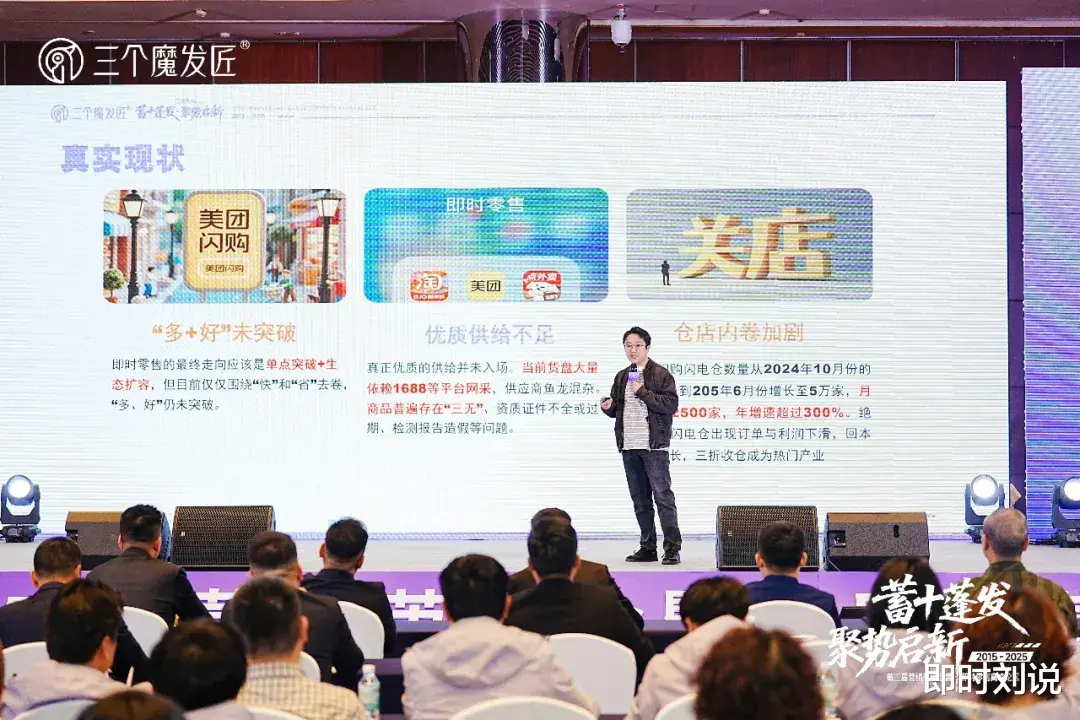 1月10日,三个魔发匠举办第二届营销精英会暨即时零售高峰论坛,即时刘说主理人 刘老实 受邀出席会议,并做《2026年即时