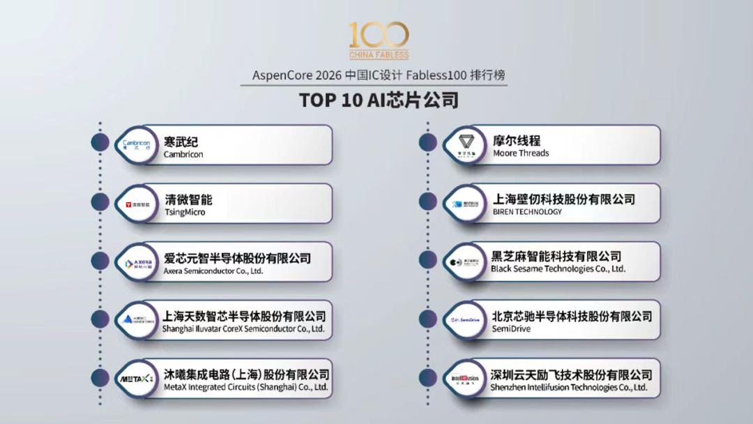 全球 AI 算力争霸已经杀到白热化,国产芯片军团再迎里程碑式的炸裂成绩单!近日,全球电子工程领域权威媒体 AspenCore 重磅揭晓「2026AI芯片公司 TOP10」榜单,为国产 AI 芯片行业格局定下权威基调。