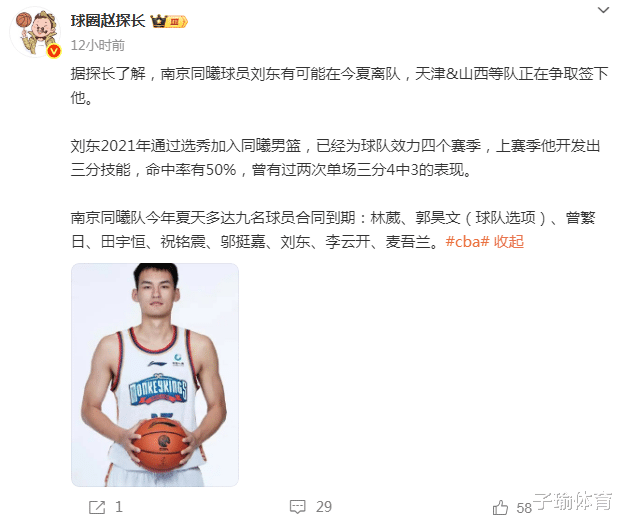 根据知名篮球记者球圈赵探长的报道,天津荣钢与山西汾酒正在争抢前南京同曦内线刘东,天津荣钢由于多名主力很有可能被交易到北控男篮,球队正面临大换血,刘东去后能获得稳定的上场时间,而山西汾酒则目标争冠,内线除了刘传兴与韩霈瑜外,葛昭宝、邢志强年纪便大,需要刘东加强人员轮换,相较于山西汾酒给出的大合同,或许天津荣钢能给到的出场时间对于刘东来说更有吸引力。