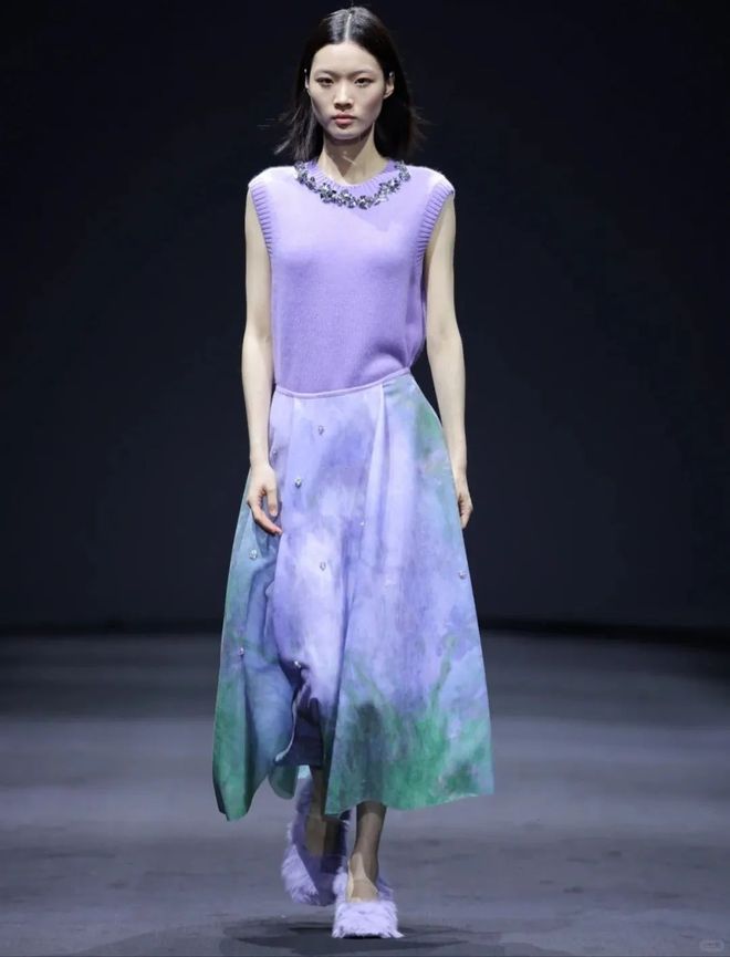 中国设计师品牌 JACQUES WEI 在24AW 主题为“月下美人”的秀场,用低饱和度的紫色,流畅的线条,呈现繁复与轻灵、细腻与松散,捕捉刹那间的美丽。