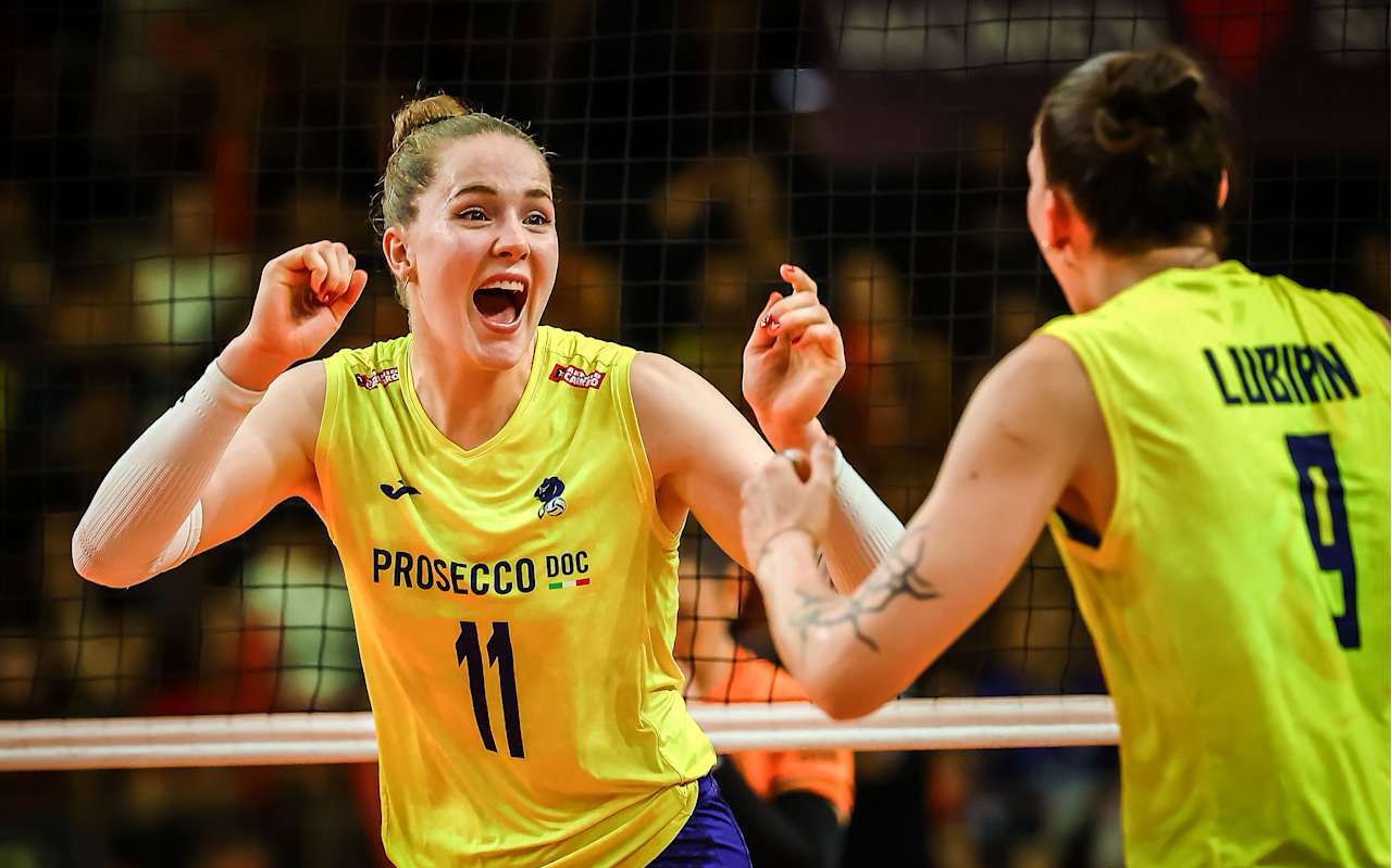 最终,科内利亚诺女排在先丢一局的情况下,艰难的以3:1战胜了对手。这场比赛的过程远比结果要更加的激烈,前两局科内利亚诺都是压着被打,发球根本发挥不出来,作为强发球轮的哈克不断的发球失误,这很影响士气,全场她的发球失误多达6个。在第一局输球,第二局21:23科内利亚诺落后2分的时候,如果丢了第二局,那么在对手的主场就很难翻盘了,这可能就会演变成一场爆冷。最终从朱婷的发球开始,加上前排的齐里切拉,球队连得4分,实现了逆转。