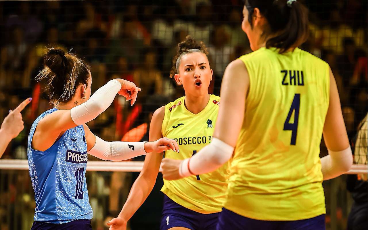 女排世俱杯半决赛在巴西开打,卫冕冠军科内利亚诺女排迎战东道主奥萨斯库女排,对于双方来说,这就是一场遭遇战,而这又是巴西俱乐部的主场,所以科内利亚诺女排一定要重视对手。前面的小组赛科内利亚诺女排打的都比较顺,基本没有遇到太大的阻力,如果要说阻力的话,那就是场馆内实在是太热了,几乎没有开空调,所以球员们包括朱婷在内,打完比赛都是满头大汗,这种高温下的比赛对于科内利亚诺女排的所有球员来说,都是不小的挑战。