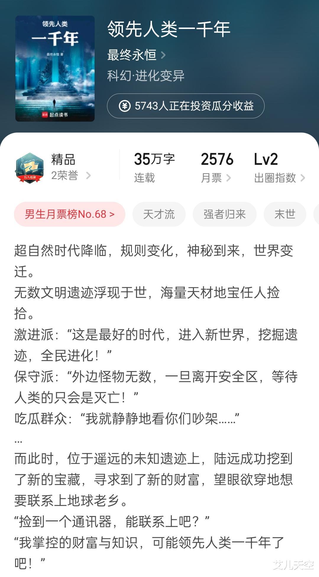 最终永恒的新书《领先人类一千年》也在今天拿到了万订徽章。
