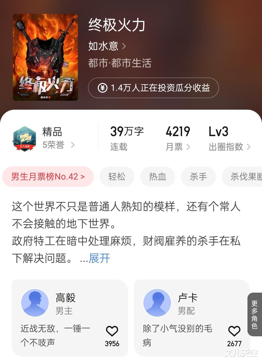 这也是他继上本的《火力为王》之后,又一本万订成绩的雇佣兵类型的小说。不过这次主角是要做一个终极杀手类型的狠人的。对这类题材有兴趣的可以关注一下。