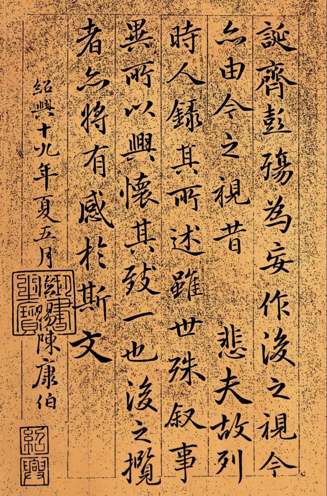此帖刻款记“绍兴十九年夏五月临赐陈康伯”,另有陈璠宝刻款“绍兴庚午九月初五日臣陈璠宝藏”及许有壬刻跋,完整留存了从南宋御赐、后世珍藏到清代刻石的流转轨迹,每一处刻痕都藏着跨越千年的文脉传承。