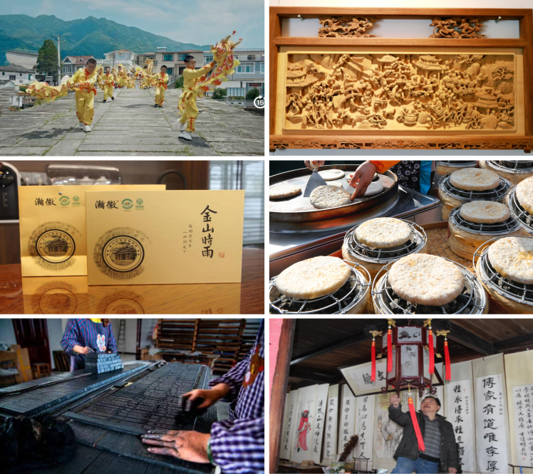 活动详情:活动期间,将有徽墨制作技艺、手龙舞、徽州三雕、绩溪挞粿制作技艺、绿茶制作技艺(金山时雨)、传统宫灯制作进行静态展示并售卖。