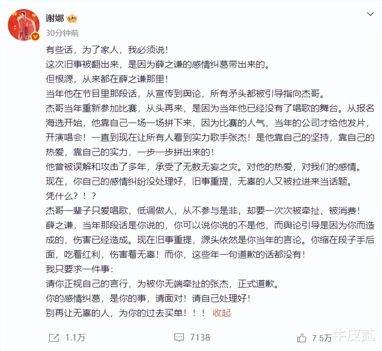 3月3号早上,谢娜在网上站出来说话。