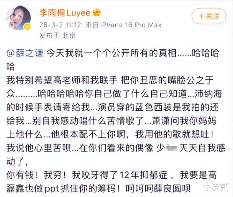 李雨桐这次在网上爆的料,跟以前那种思路清晰完全不一样。