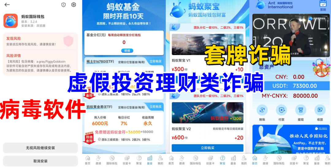 同时该项目虚构推出“稀土516780(ETF)”“蚂蚁黄金易(ETF)”“蚂蚁聚宝”等高额返利理财项目。