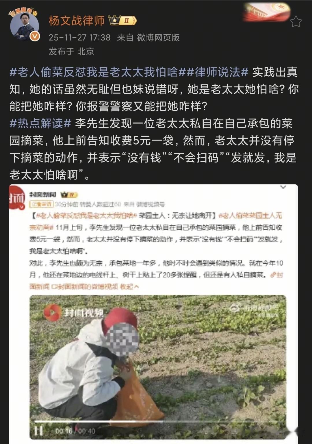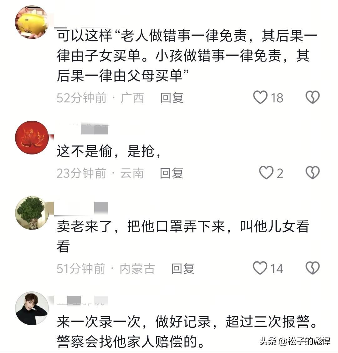 直接嚣张叫嚣“我都70多了,我还是个老太太我怕啥”,而且还特意这不是偷[灵光一闪],不给钱还有理啊。