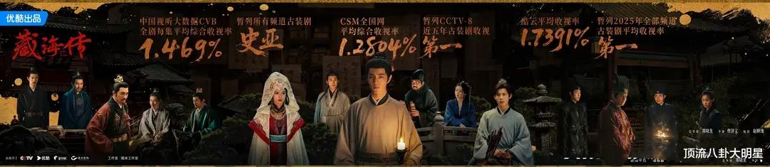 剧集在爱奇艺站内热度峰值达9853,成为站内年度古装剧TOP3。云合市占率最高26%,连续14天登顶榜单TOP1,酷云单日最高播放量6100万。上半年累计超10亿,集均有效播放破3000万。