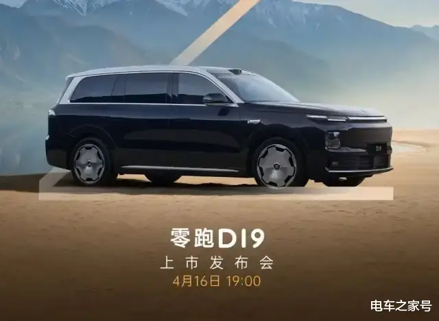 车之家获悉零跑D19将于4月16日上市。该车定位大型SUV,基于LEAP 4.0技术架构打造,将会搭载双高通8797芯片,VLA高阶辅助驾驶功能。售价方面预计会在25030万元之间。