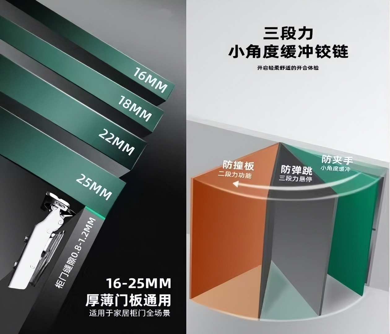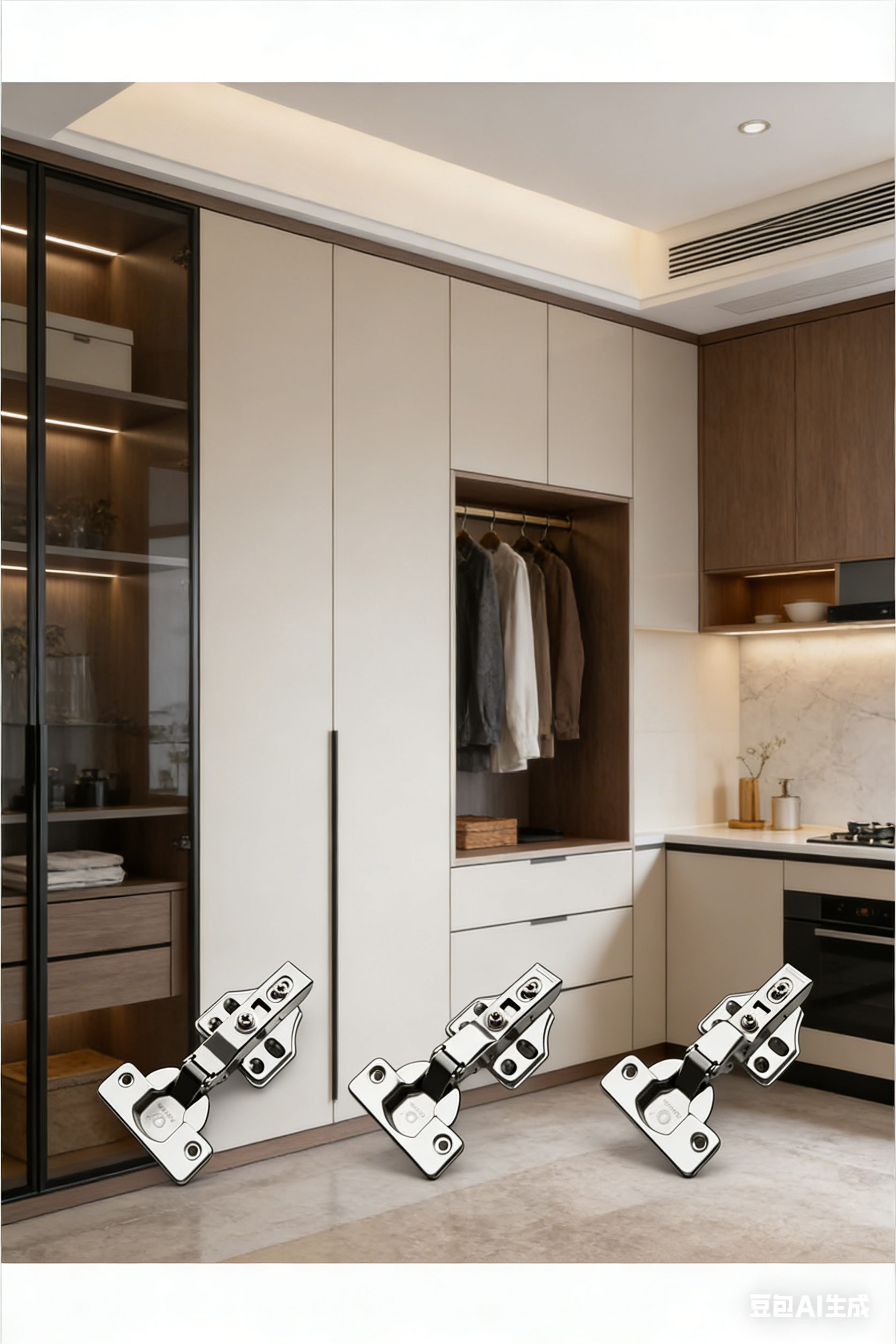 很多人装修时,只顾着砍板材价格,对铰链随便敷衍,觉得“都是小五金,差别不大”。直到入住后才发现,普通铰链用半年就开始卡顿,关门时“砰”的一声巨响,深夜起夜开灯拿东西,刺耳的撞击声能吵醒全家人;有孩子的家庭更担心,柜门突然回弹,很容易夹到孩子娇嫩的小手,隐患十足。