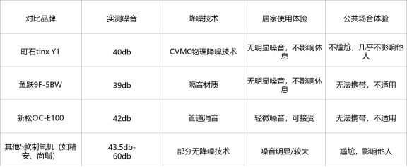 第一梯队的鱼跃9F-5BW,实测噪音39db,噪音控制也很好,采用隔音材质,居家使用不影响休息,但它是台式机,无法携带,只能在居家使用,适配场景有限。