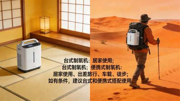 目前市面上制氧机主要分为两类——台式制氧机和便携制氧机,两者适用场景差异明显,按需选择才能避免闲置、不踩坑。