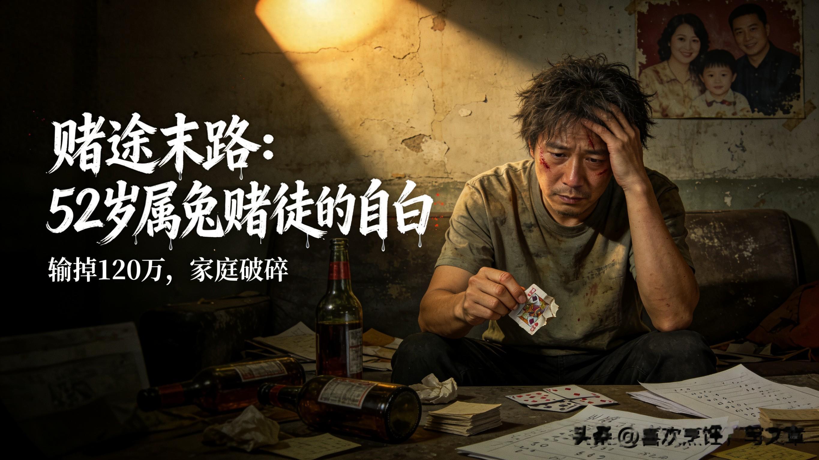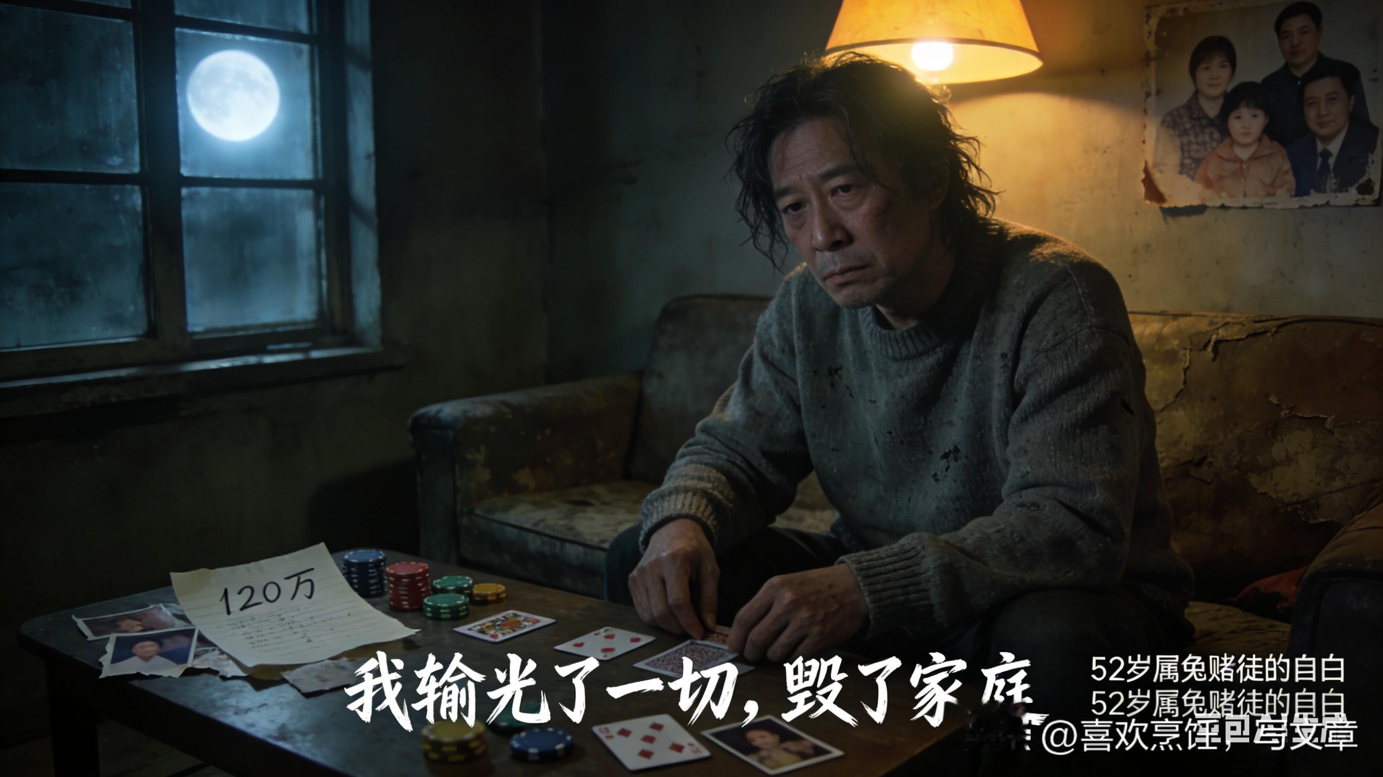 年轻的时候赌钱,输了就去偷,偷了被抓,判了三年。出来之后赌得更凶,赢了就吃喝嫖赌,输了就去借高利贷。老婆跪在地上求我,儿子躲在门后哭,我那时候心硬啊,觉得只要赢一把大的,什么都能翻回来。