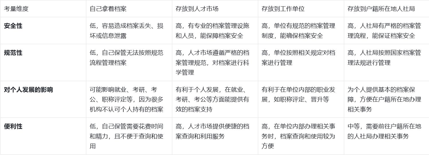 户籍所在地的人力资源和社会保障局:对于没有找到合适工作单位或工作单位不具备档案管理权限的自考生,可以将档案存放到户籍所在地的人力资源和社会保障局。